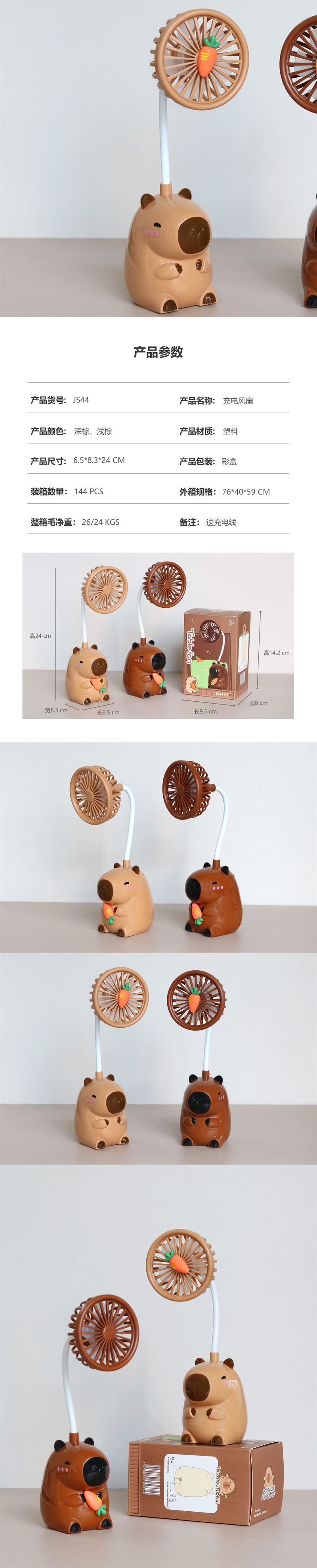 Маленький вентилятор Kapibala с рисунком капибары, зарядка для детей, студенческого общежития, портативный офисный настольный вентилятор