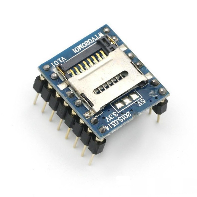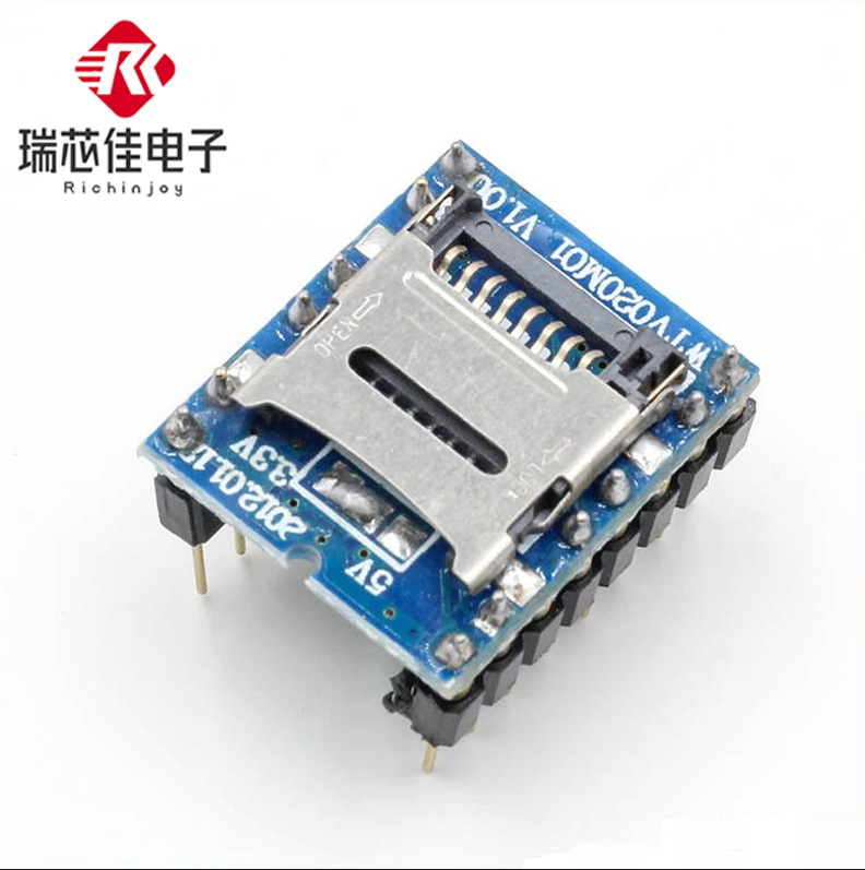 WTV020-SD模块是一款可重复擦写语音内容的大容量存储类型的语音模块,可外挂Z大容量为1GB的SD卡存储器。能加载WAV格式语音和AD4格式语音。