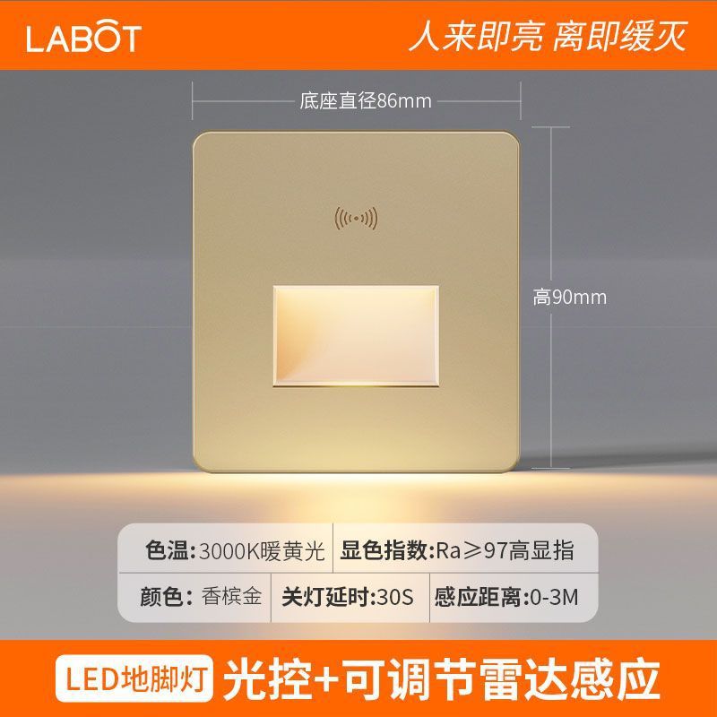 Тип 86 встроенный датчик человеческого тела, лампа для ног, лестничная ступенька, датчик, лампа для коридора, прохода, коридора, светодиодная лампа для ног