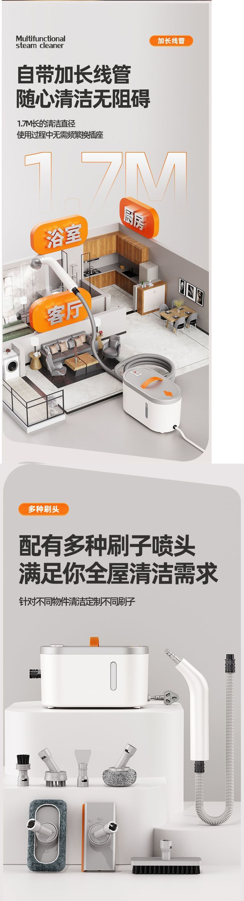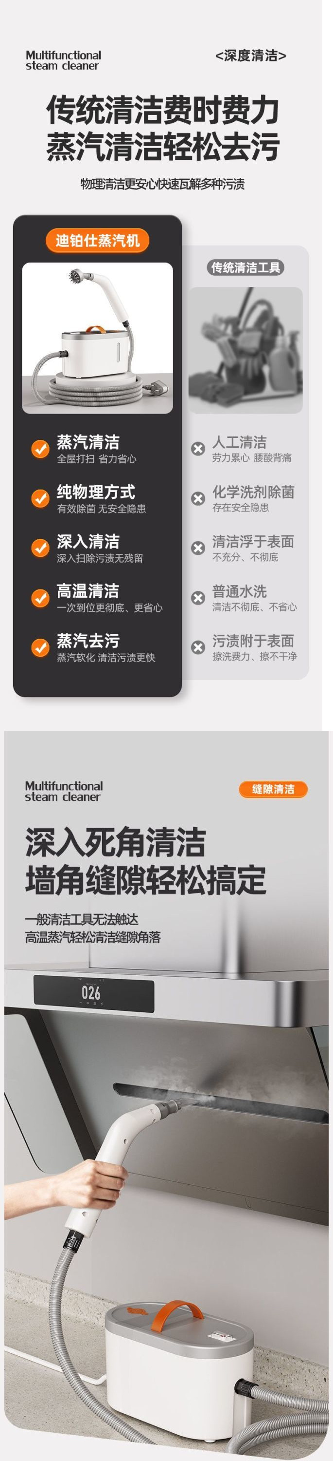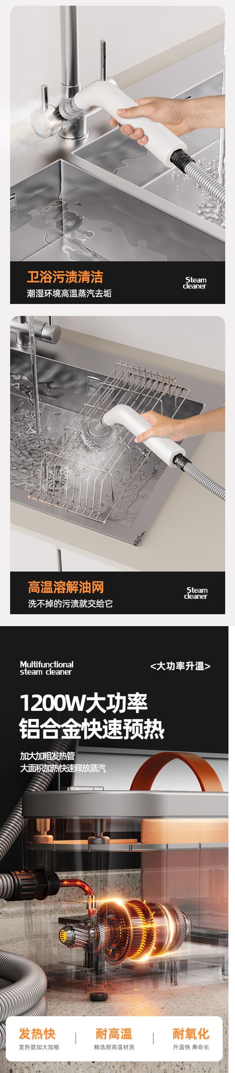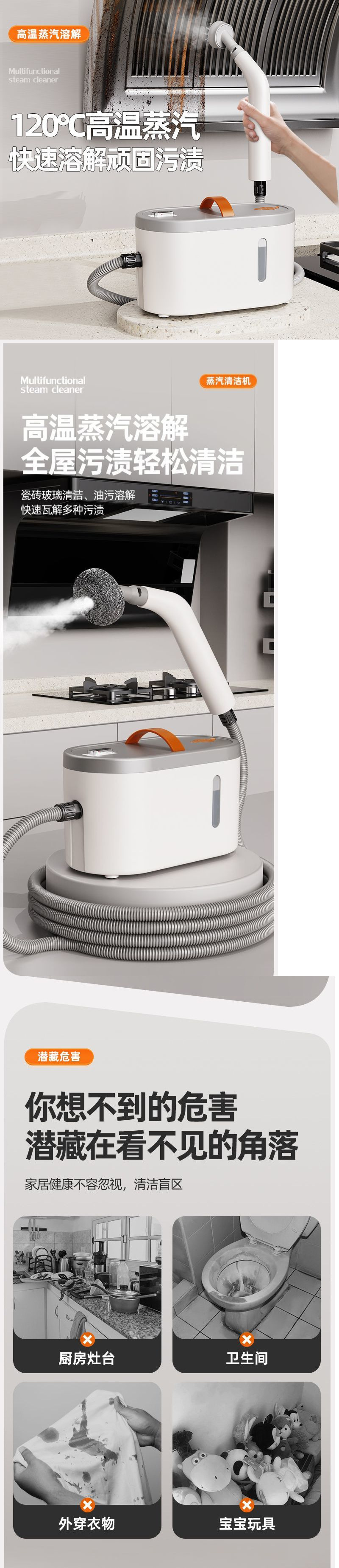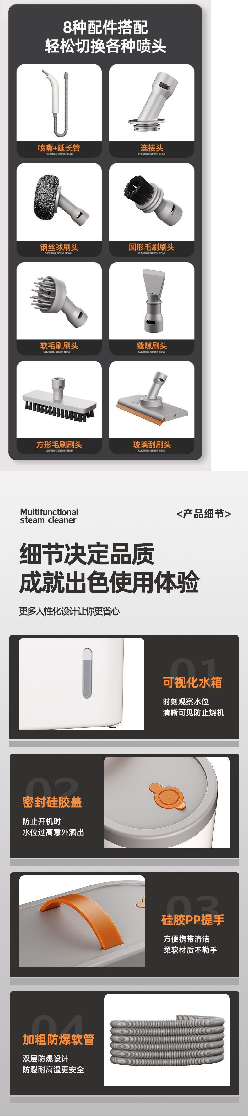 [Эффективная стерилизация] Пароочиститель, многофункциональный универсальный бытовой кухонный дым, высокая температура и высокое давление, чистка бытовой техники