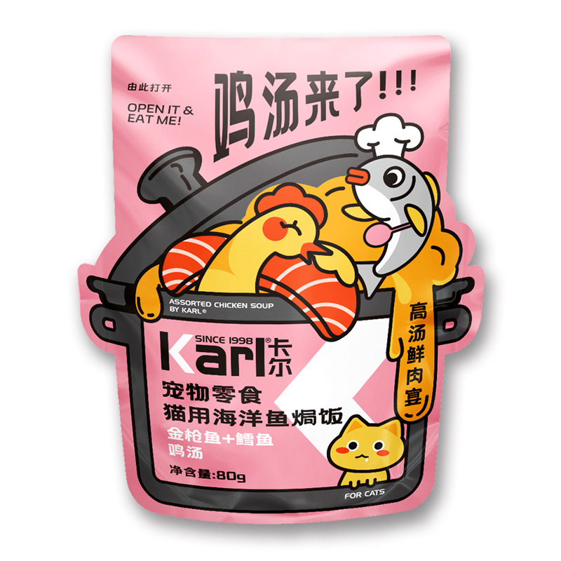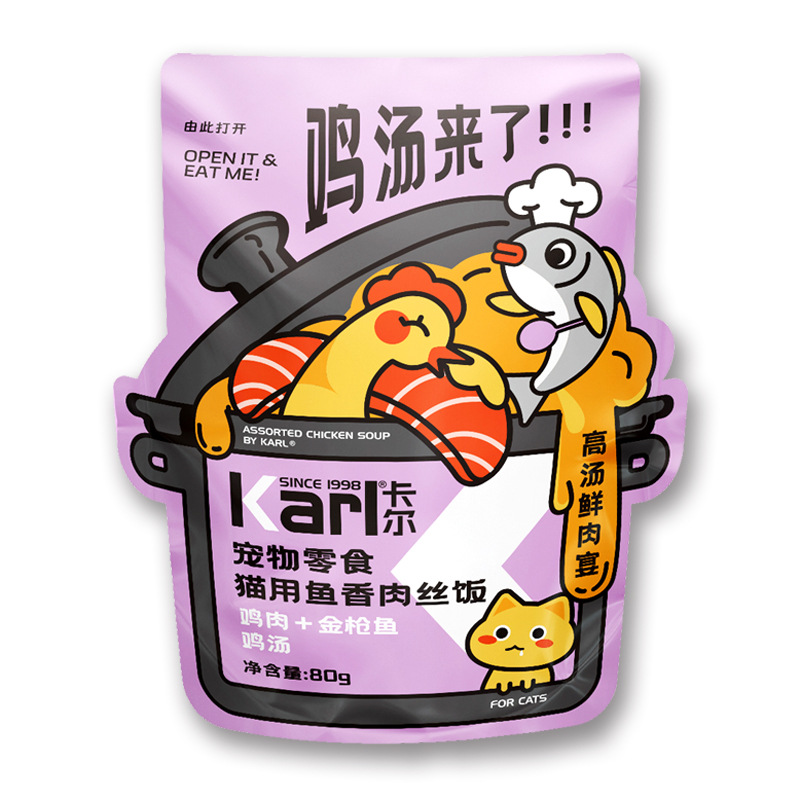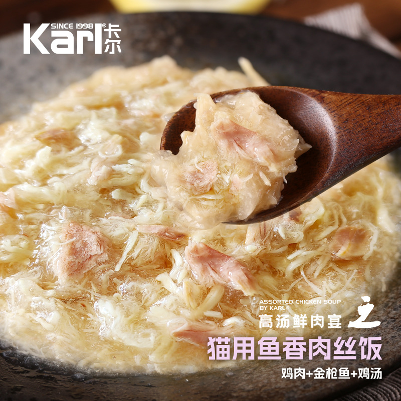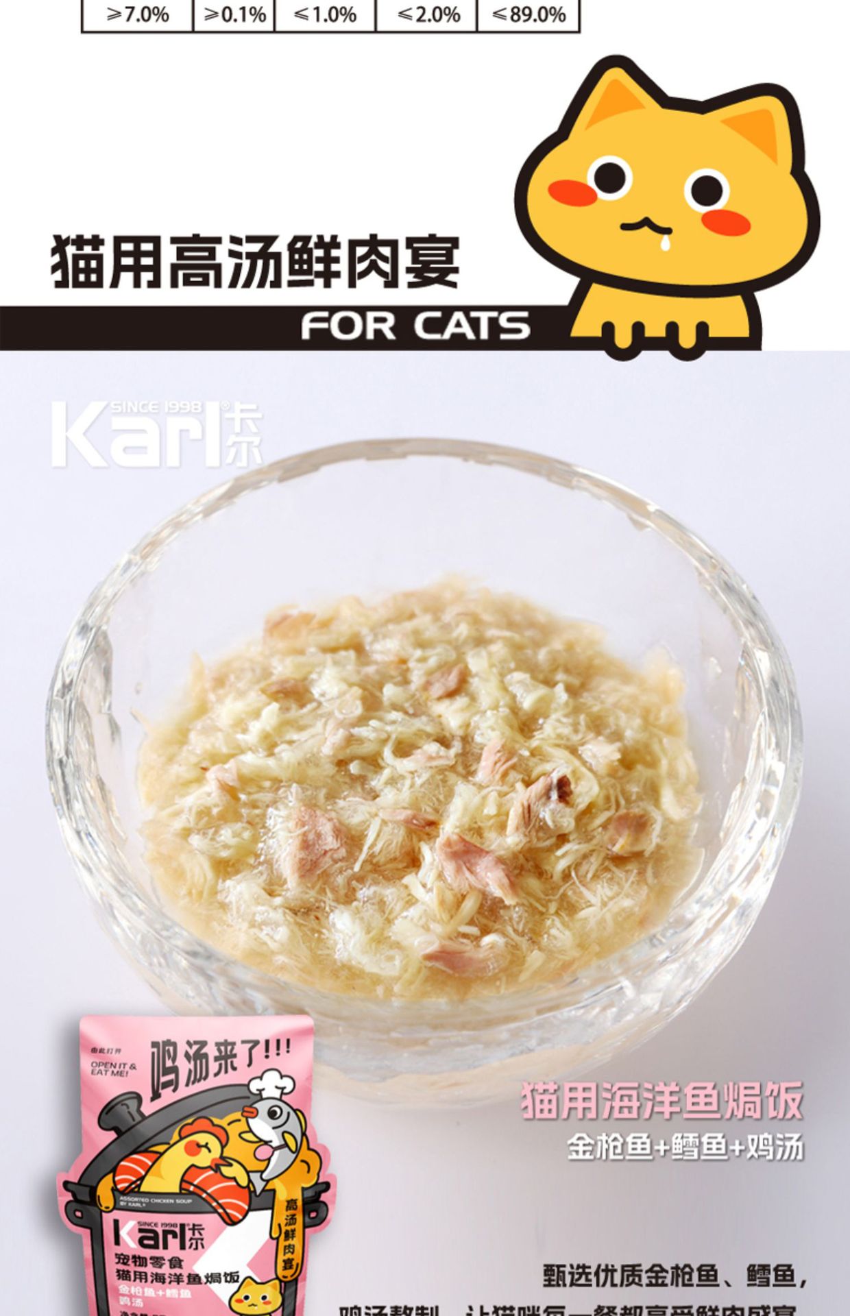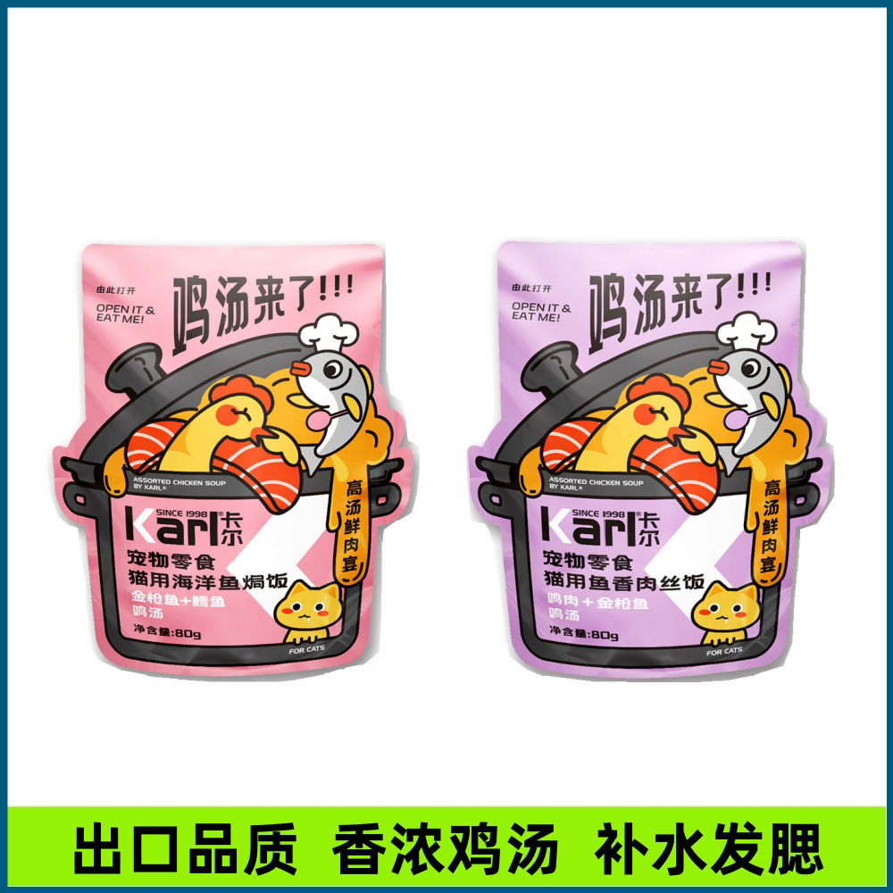 Karl Karl Cat Snacks Куриный суп здесь, свежий мясной праздник, замечательная свежая герметичная банка влажного корма, увлажняющие жабры 80г