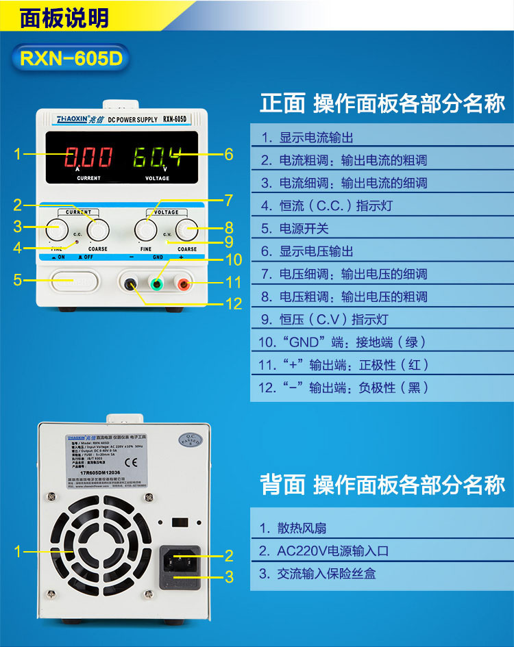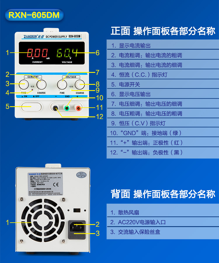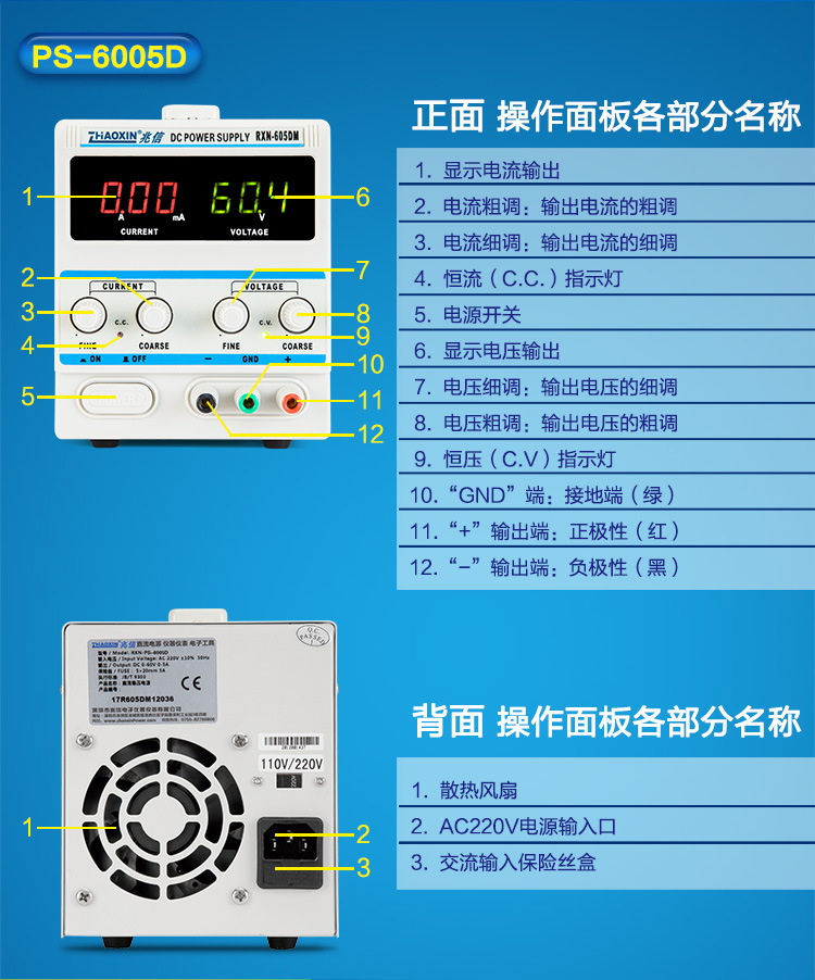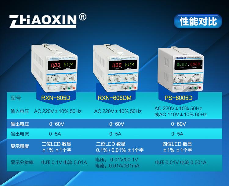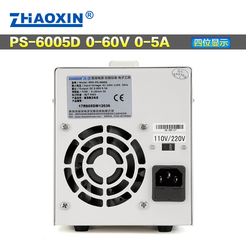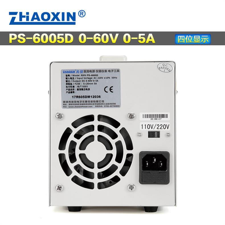 Zhaoxin PS-6005D Регулируемый источник питания постоянного тока 60 В, четырехзначный дисплей мА 110 В/220 В