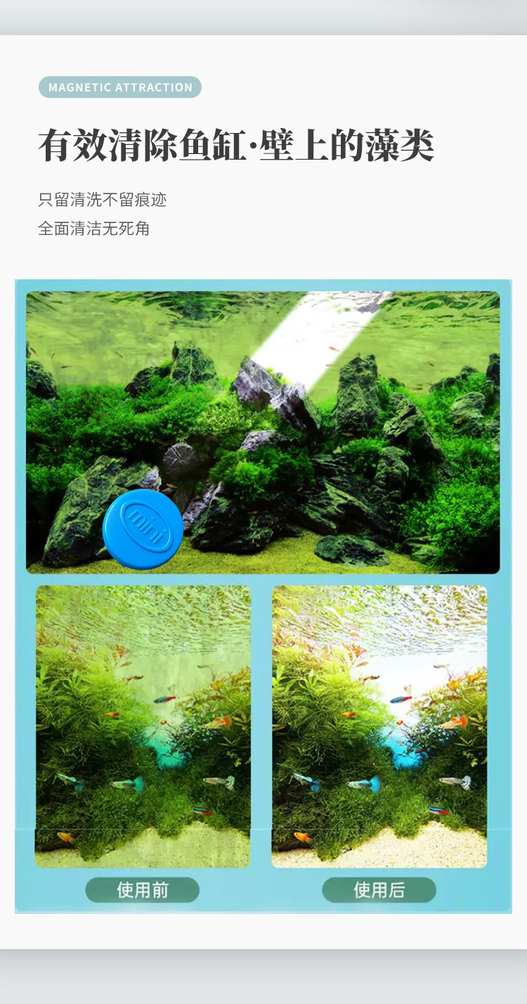 Маленькая мини-магнитная щетка для аквариума, щетка для удаления водорослей, стеклянная щетка, инструмент для чистки, чистка мха, зеленых водорослей, супер всасывание