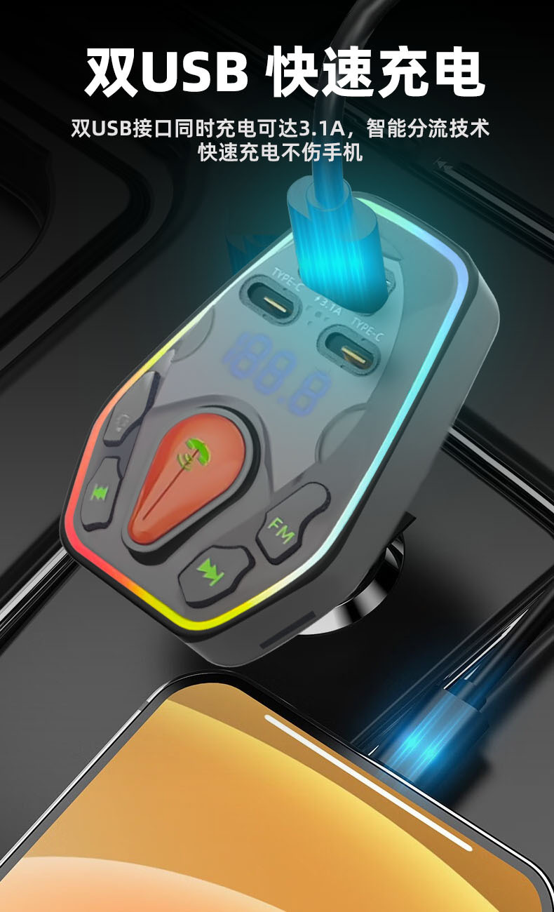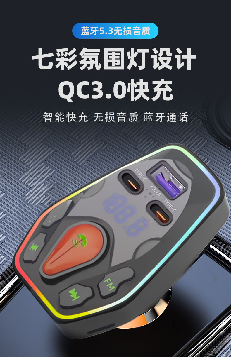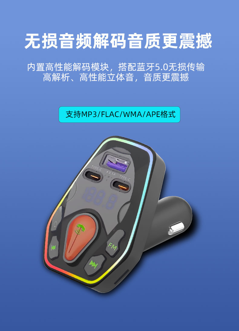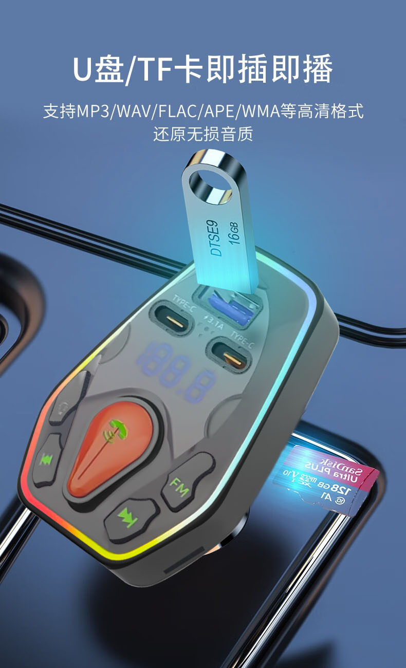 Трансграничное автомобильное зарядное устройство HT-9 с Bluetooth, быстрая зарядка, автомобильный прикуриватель, один для двух, с красочной атмосферой, быстрая зарядка PD