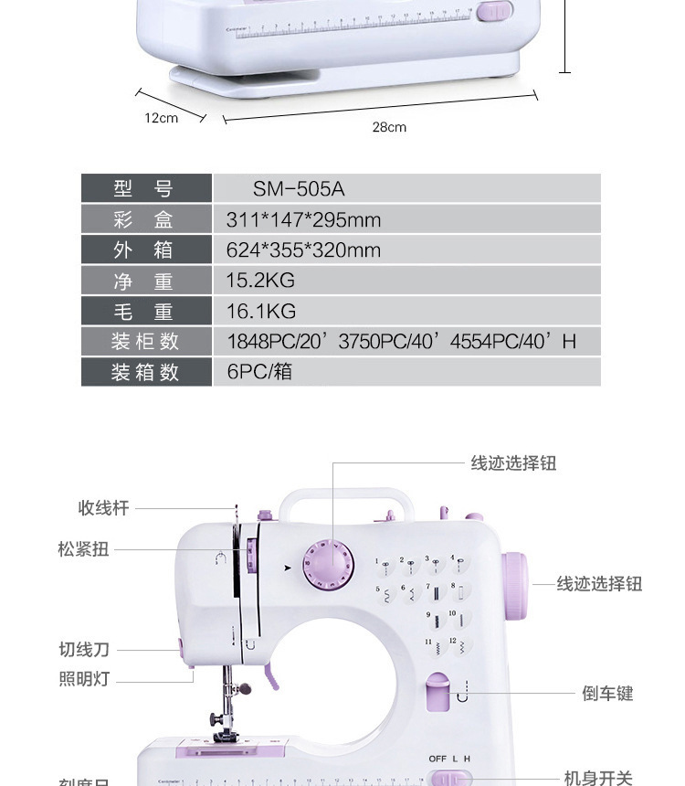 Кросс-бордерная популярная модель швейной машины 505A, улучшенная модель, бытовая электрическая настольная ручная полностью автоматическая, оптовая продажа от производителя