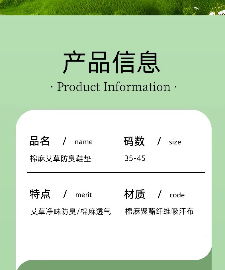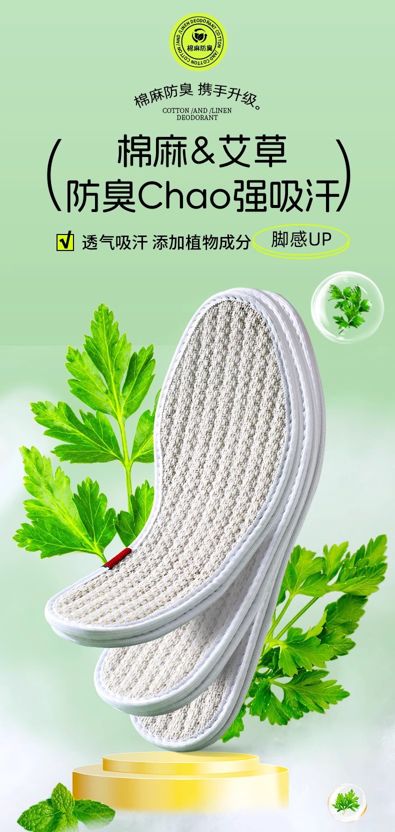 Полынь хлопковая и льняная дезодорируемая стелька поглощает пот