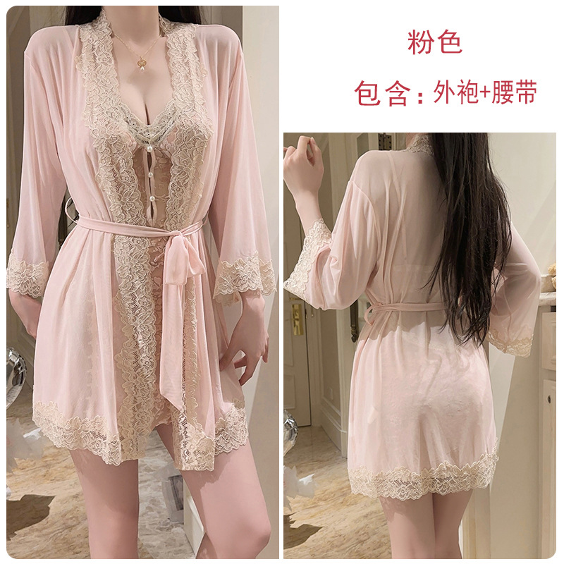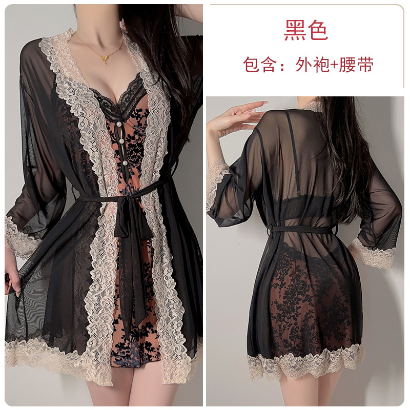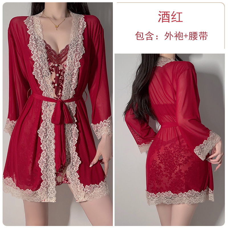 Guiruo нижнее белье, сексуальный пуш-ап плюс нагрудник, чистое желание, милая бархатная прозрачная сетчатая ночная рубашка, комплект верхнего халата C5928