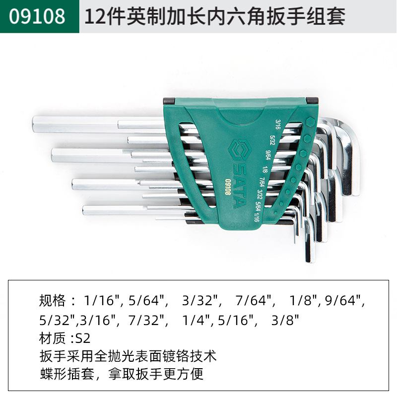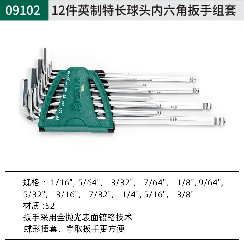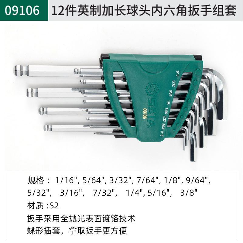 Набор британских шестигранных ключей Shida, 12 предметов, удлиненный шестигранный ключ с шаровой головкой и плоской головкой