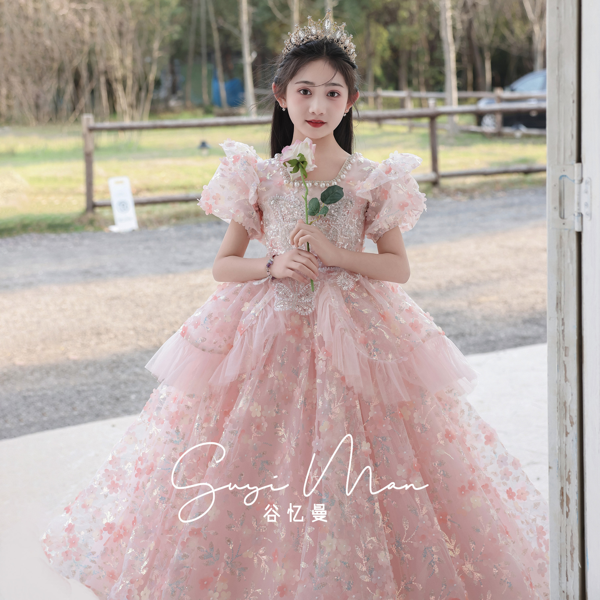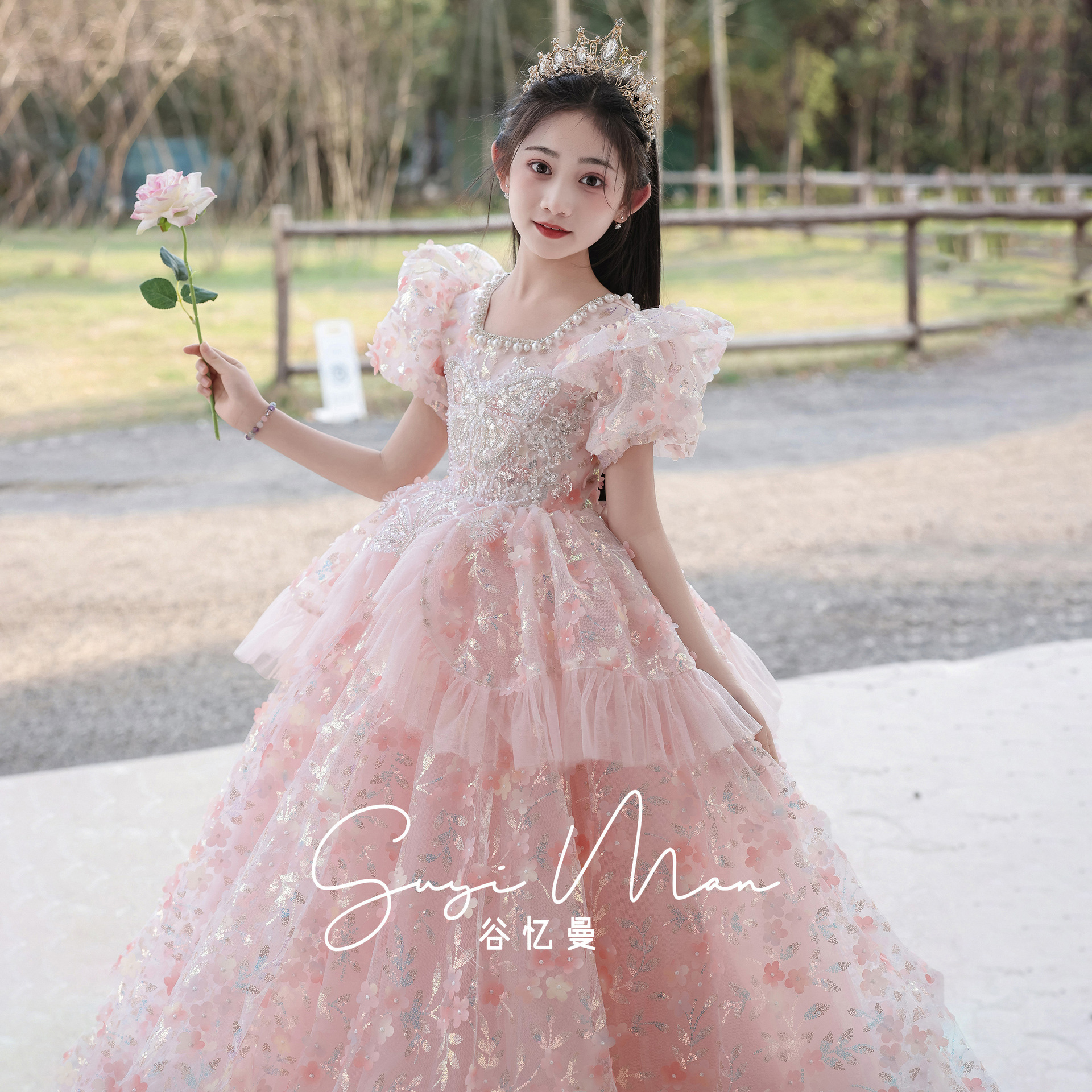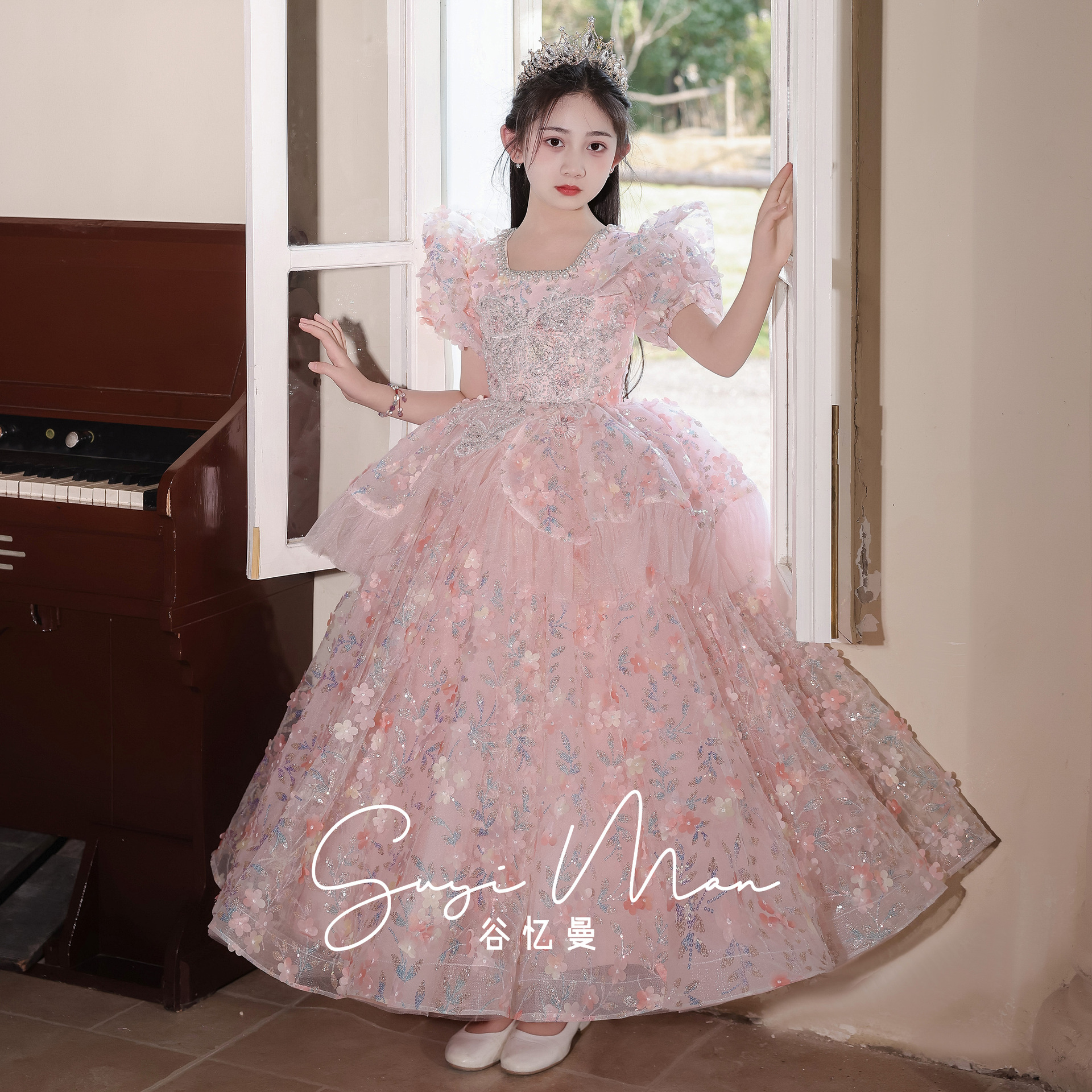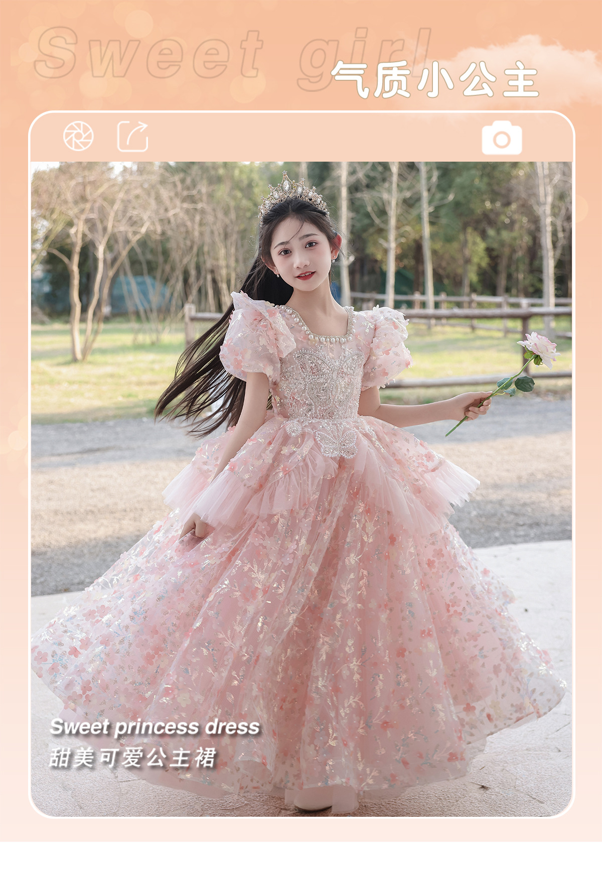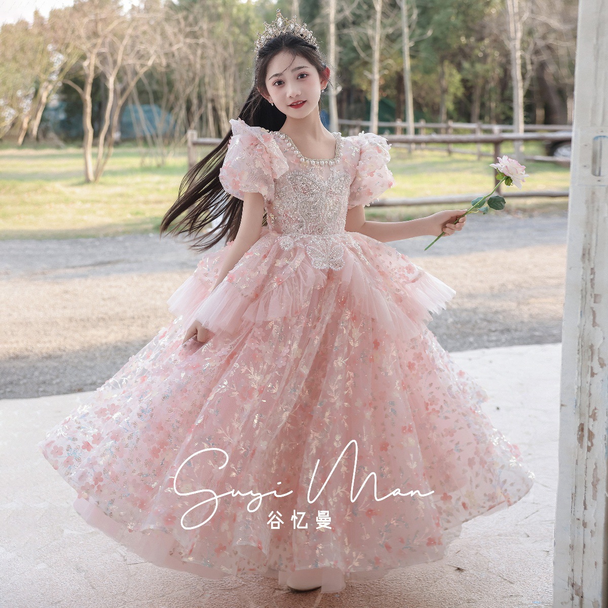 2025 новое красивое платье для девочки-ведущей, элегантное платье для маленькой принцессы, детское платье для выступления на фортепиано
