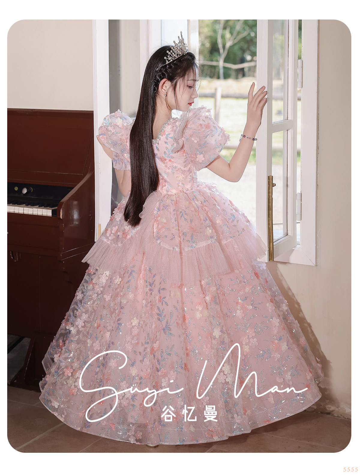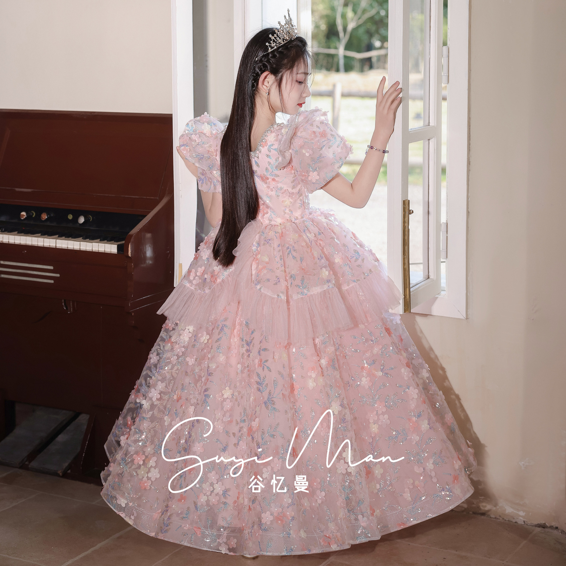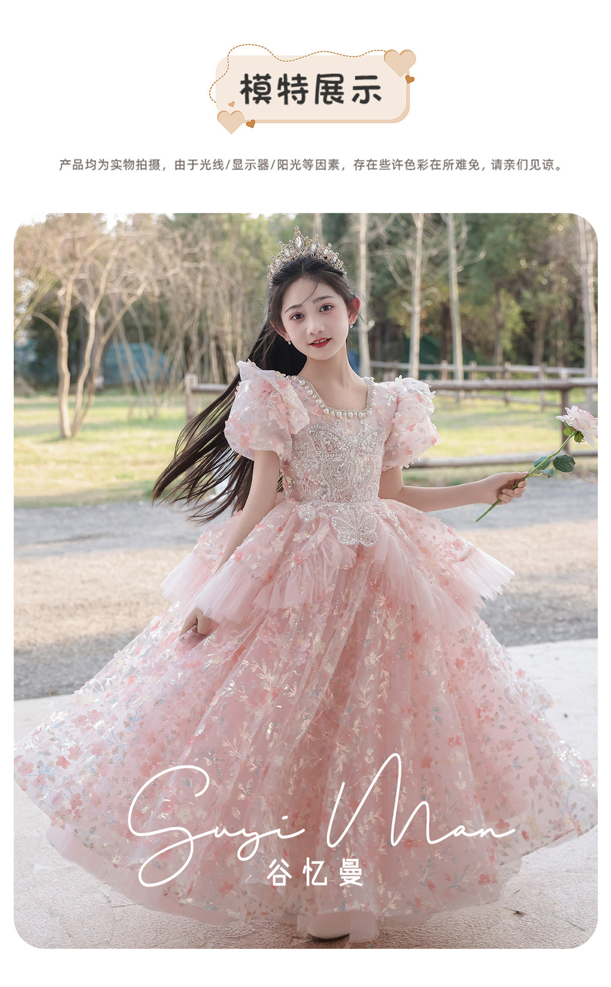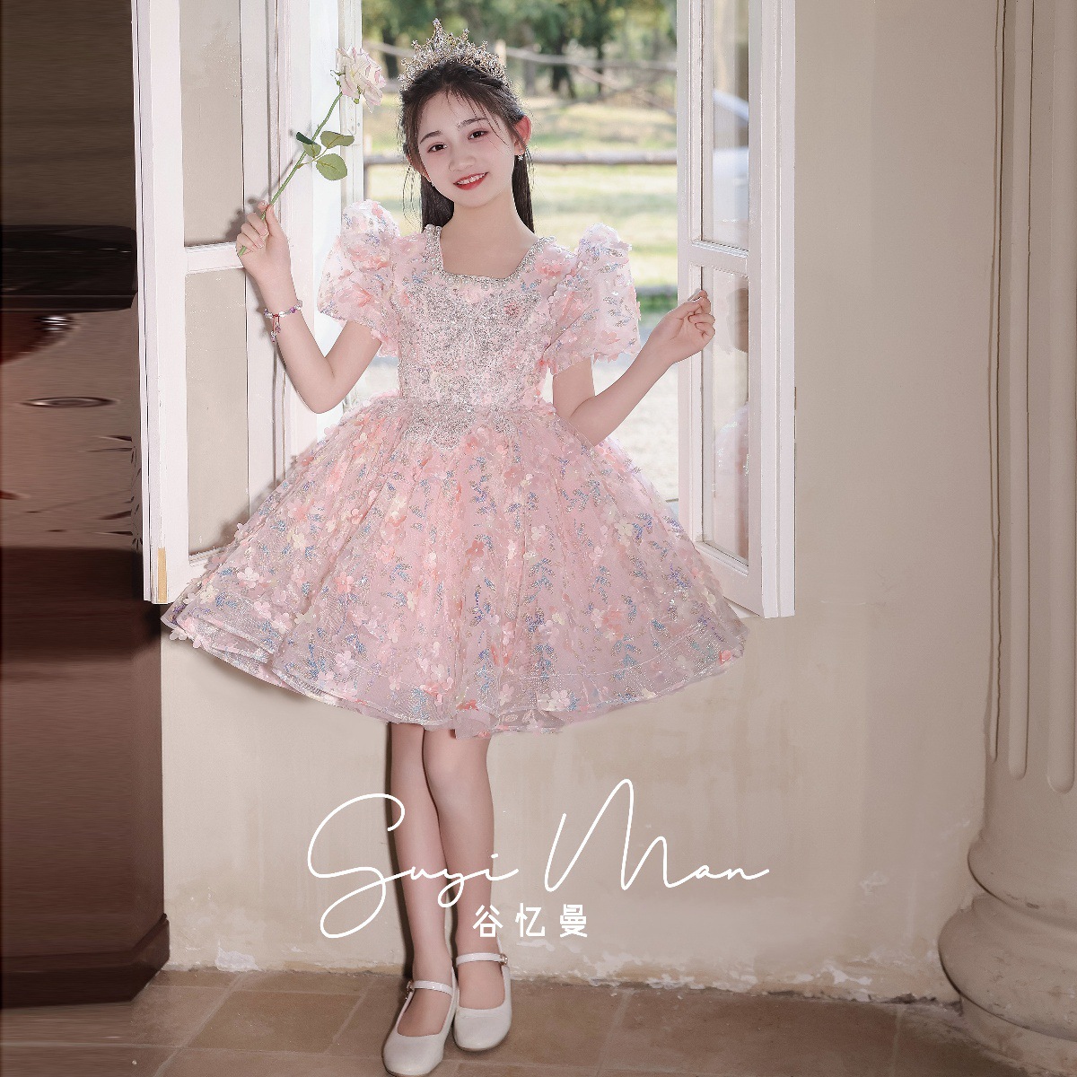 2025 новое красивое платье для девочки-ведущей, элегантное платье для маленькой принцессы, детское платье для выступления на фортепиано