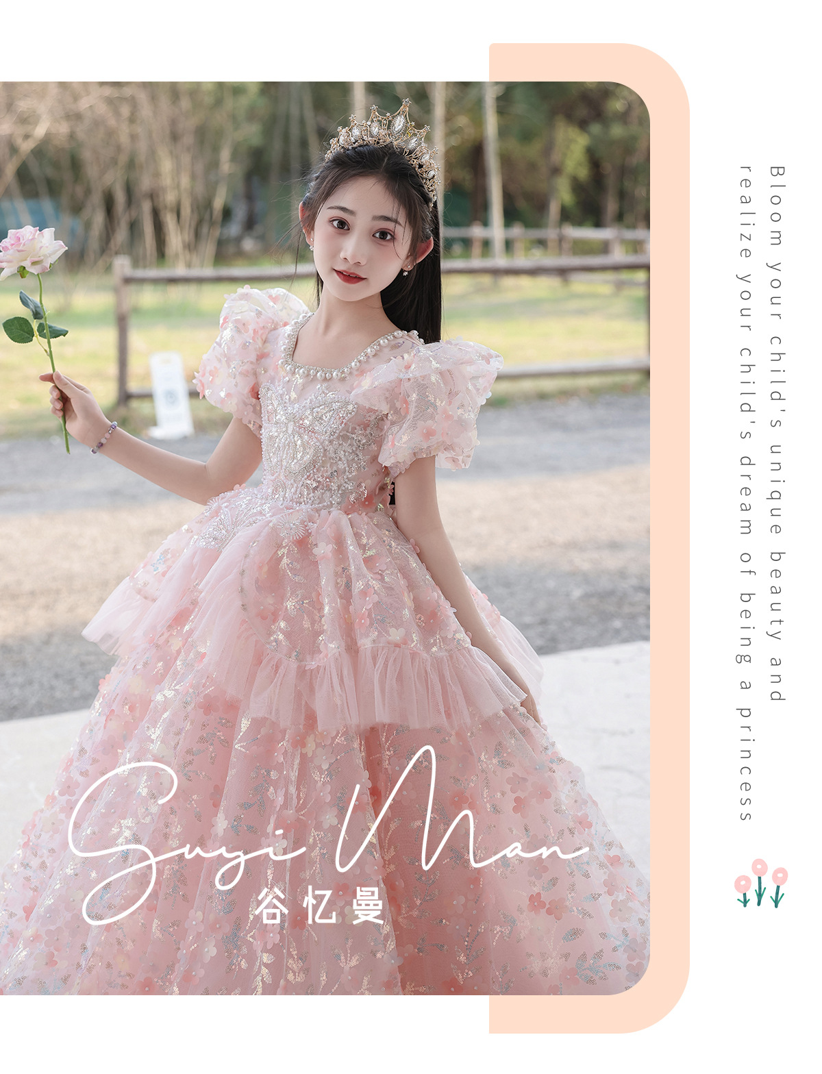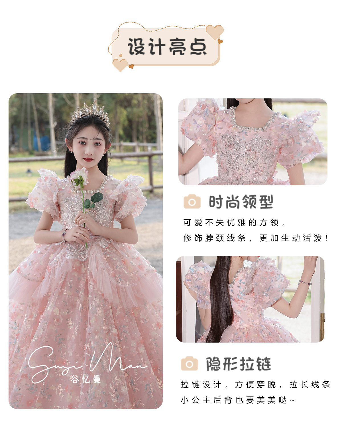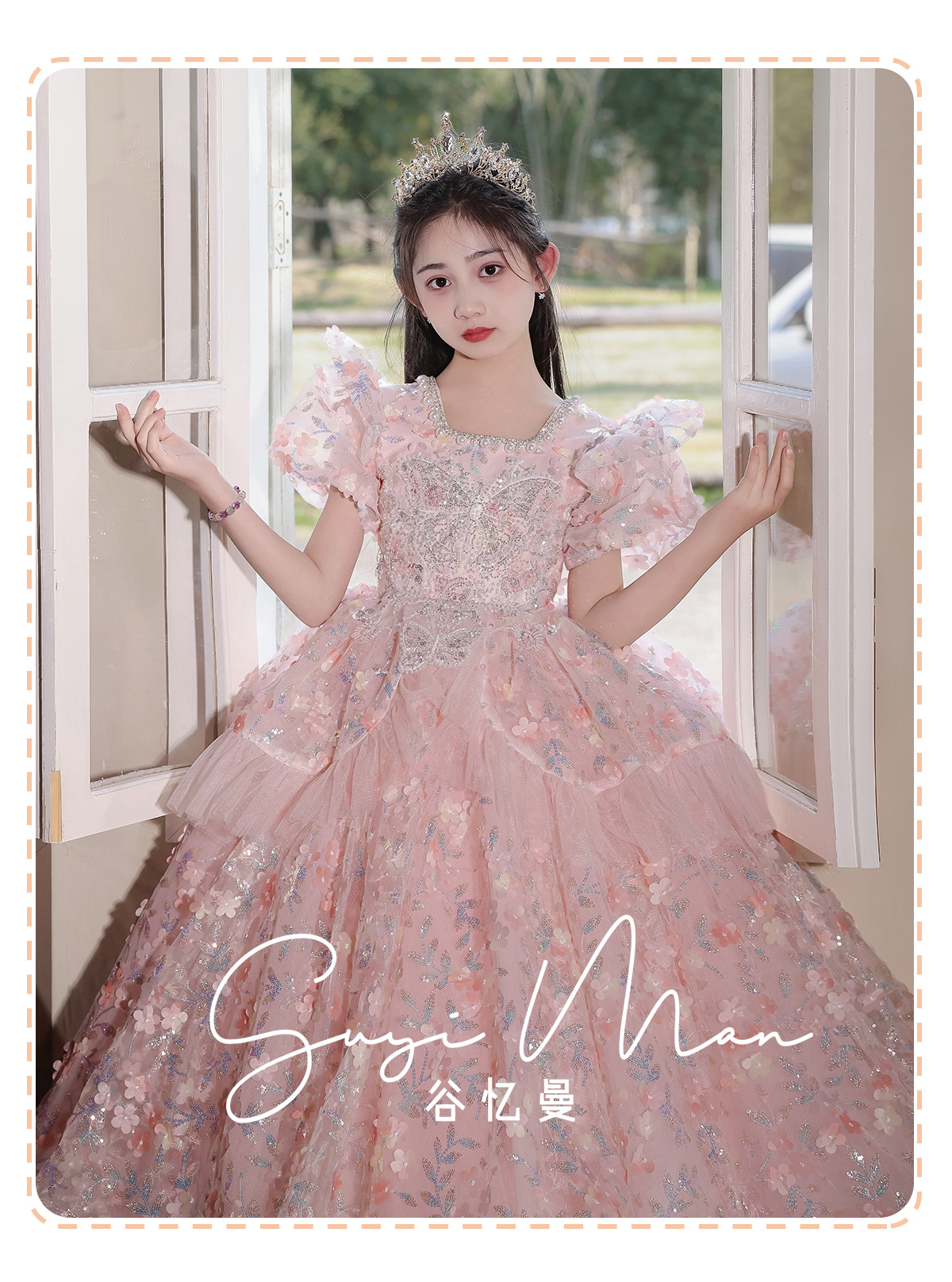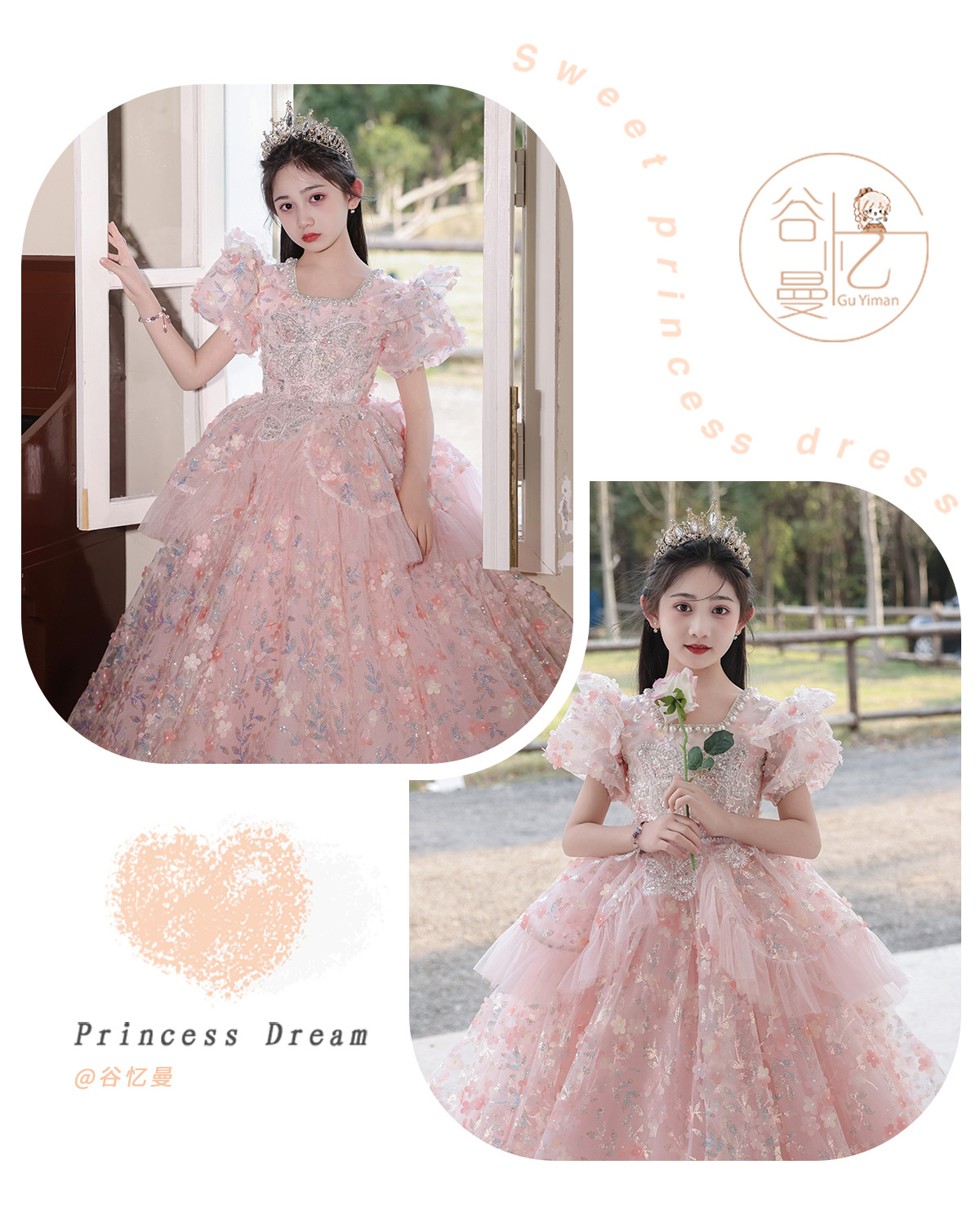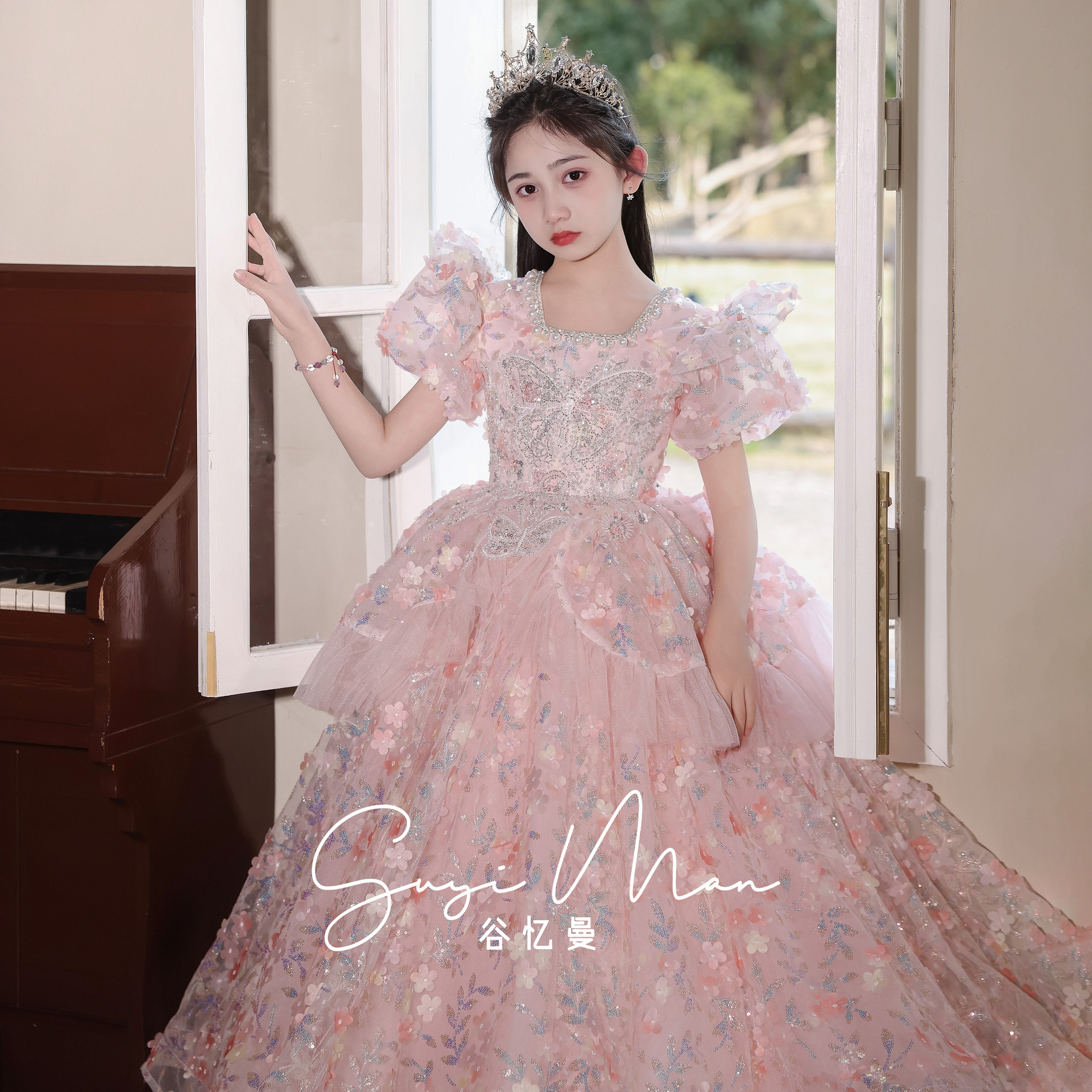 2025 новое красивое платье для девочки-ведущей, элегантное платье для маленькой принцессы, детское платье для выступления на фортепиано