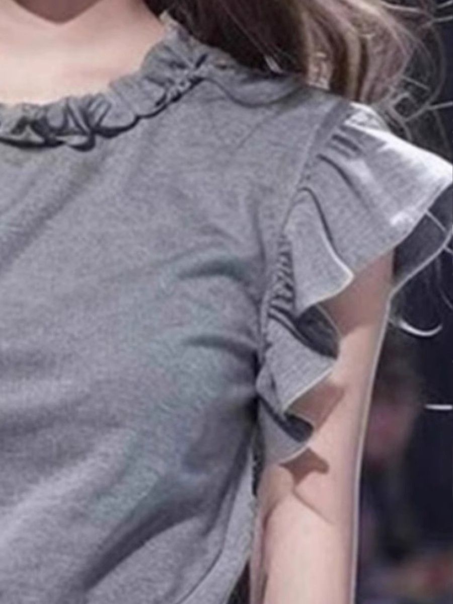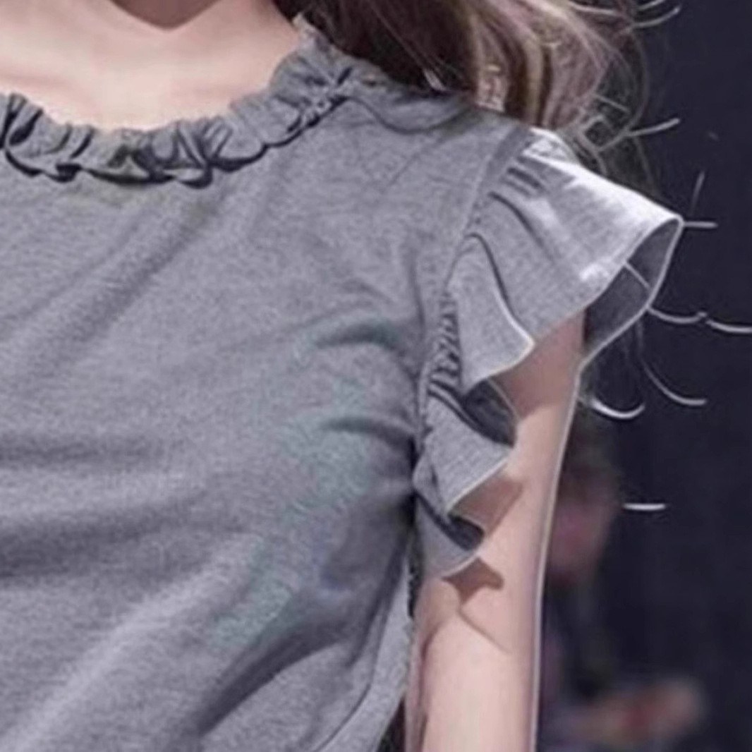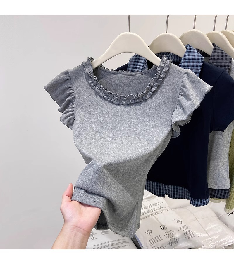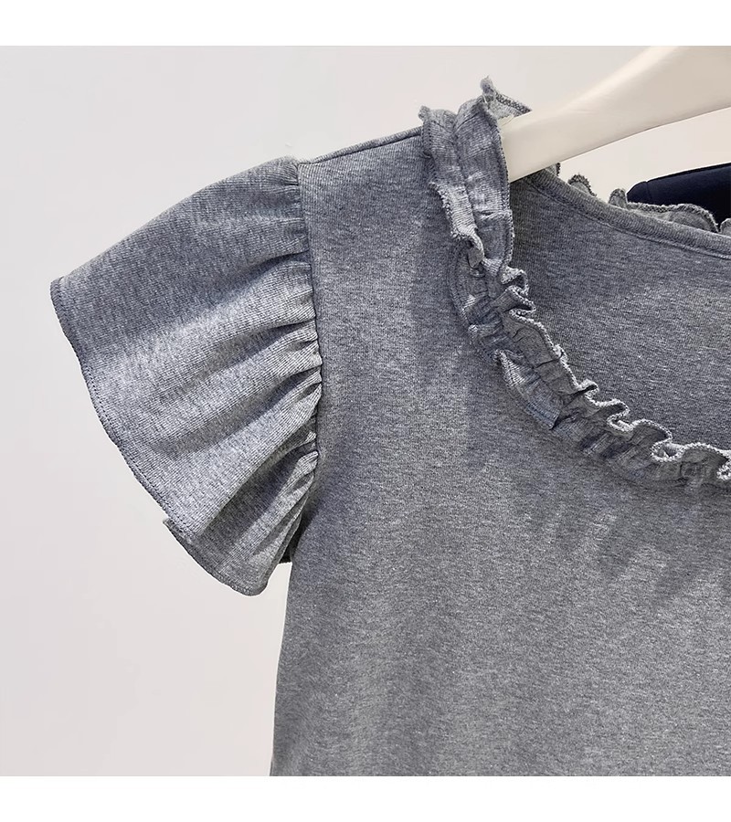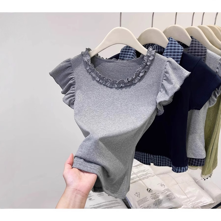 французский стиль, уникальный и красивый элегантный, круглый вырез, маленькие летящие рукава, футболка, топы с короткими рукавами, женский летний новый дизайн