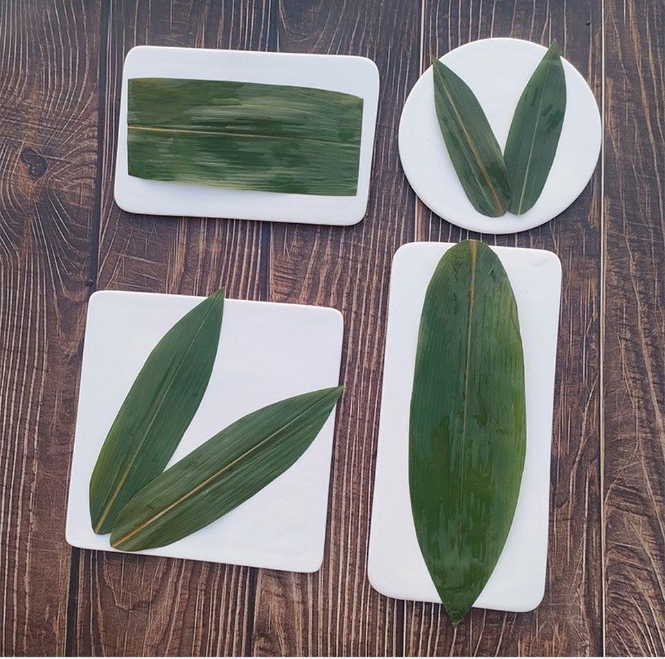 Бамбуковые листья небольшого размера, 100 шт., коммерческая тарелка для барбекю, бамбуковые листья, свежие листья для украшения сашими, рисовые пельмени