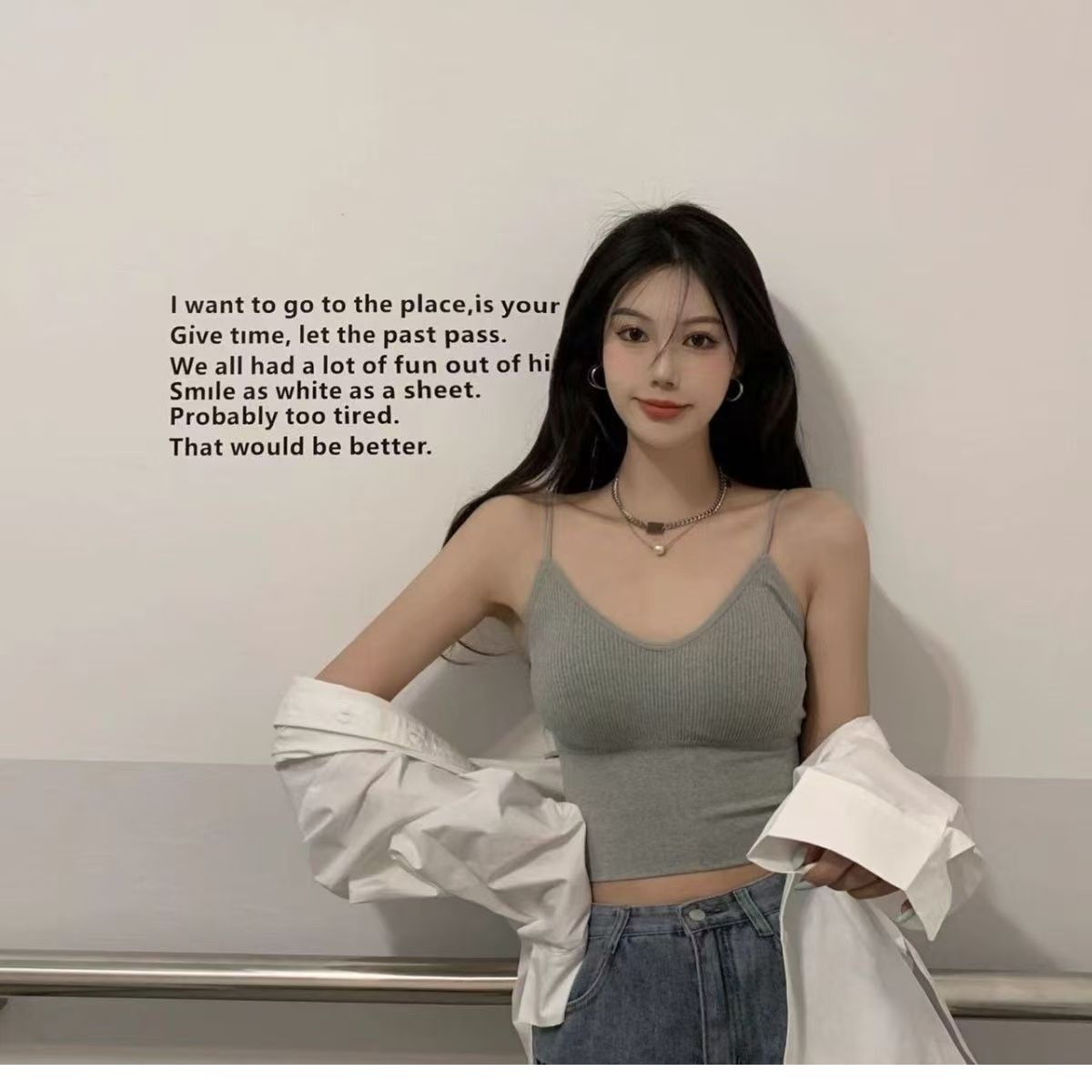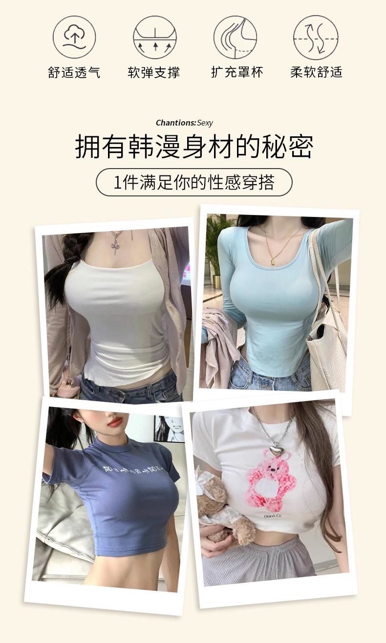 Модная однотонная майка со съемными утолщенными накладками на груди, бюстгальтером, увеличивающим и расширяющим внешний вид, подходит для ношения в слоях или в одиночестве.