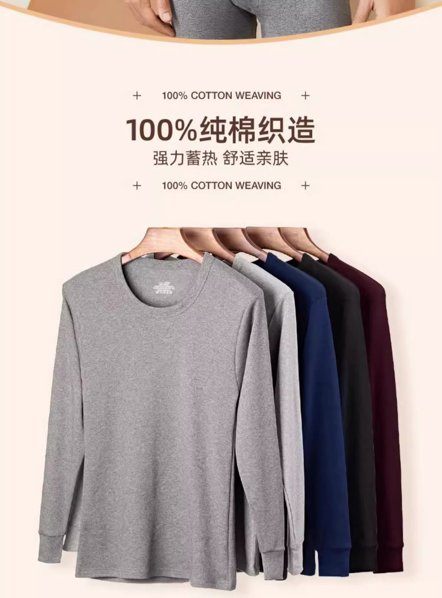 Jiandan Niao, осеннее мужское термобелье из чистого хлопка, осенне-зимний топ, цельный хлопковый внутренний свитер, хлопковый свитер с круглым вырезом