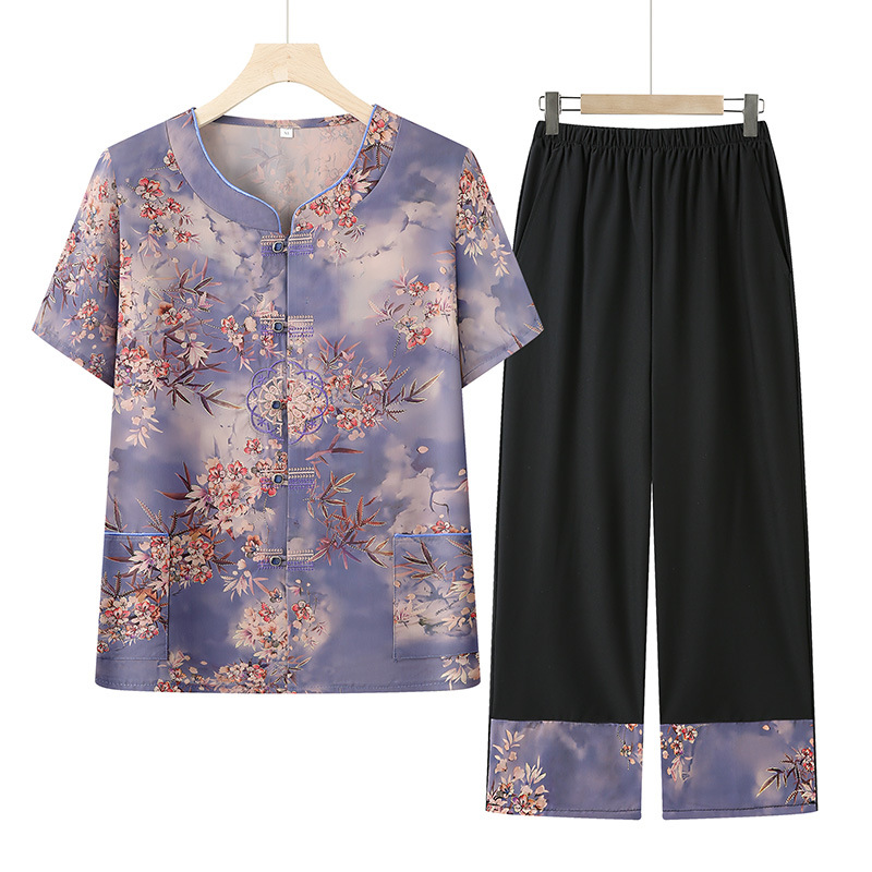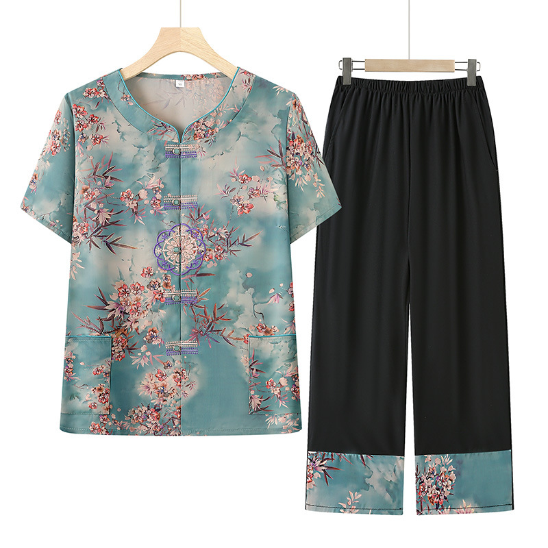 Летний костюм бабушки с короткими рукавами, комплект из двух предметов женской рубашки среднего и пожилого возраста, летняя одежда для пожилых людей, женская одежда и брюки.