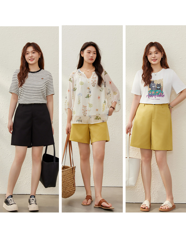 [Leisel укороченные брюки] Тонкие свободные короткие шорты с широкими ножками, стройные большие размеры, женские толстые mm летние новые
