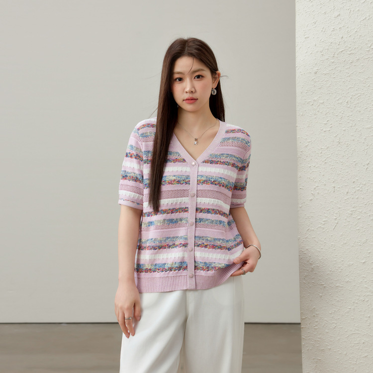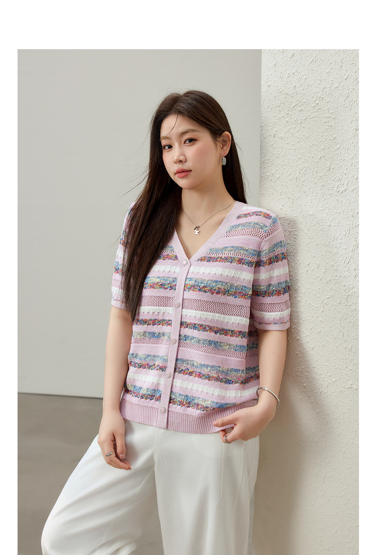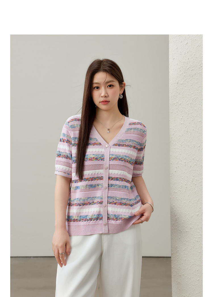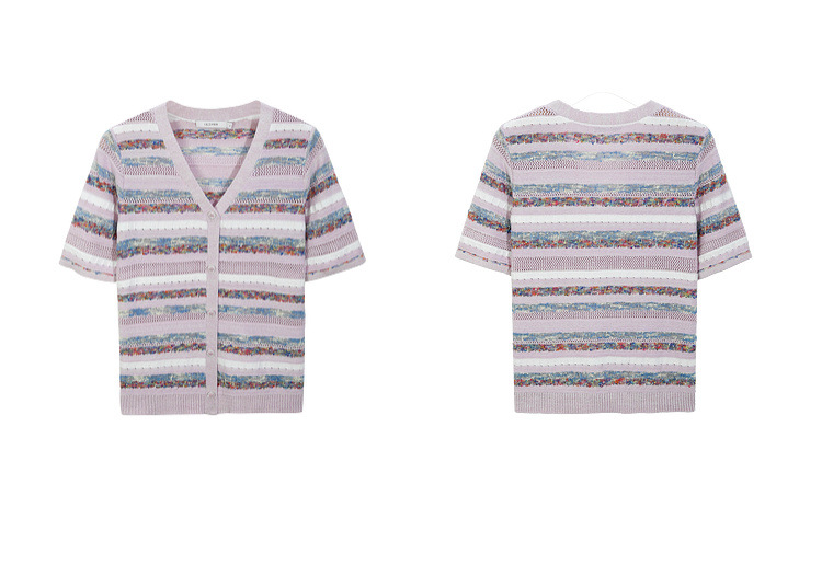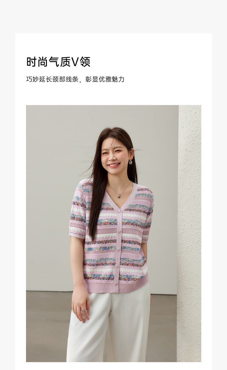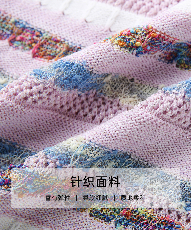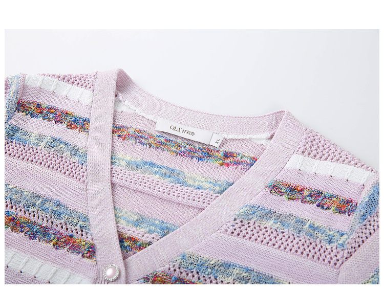 [Yunhai Morning Mist] Ленивый стиль, радужный элегантный трикотаж с v-образным вырезом, тонкий и эффектный женский размер больших размеров, летний новый стиль