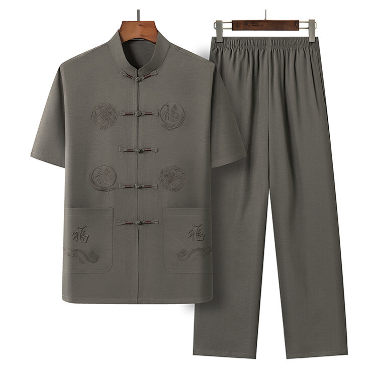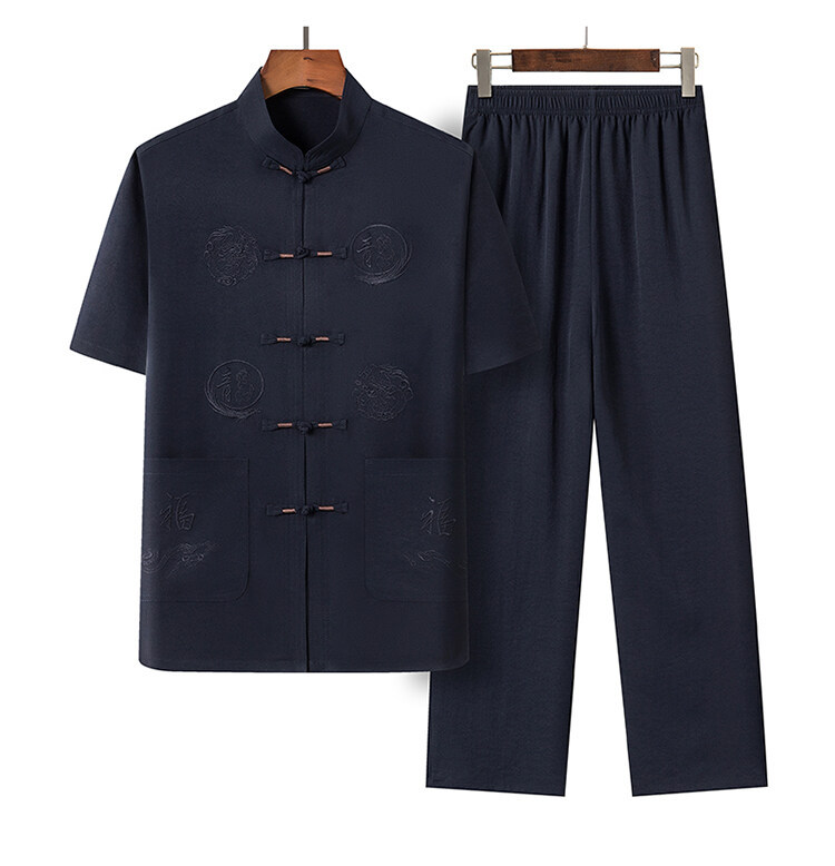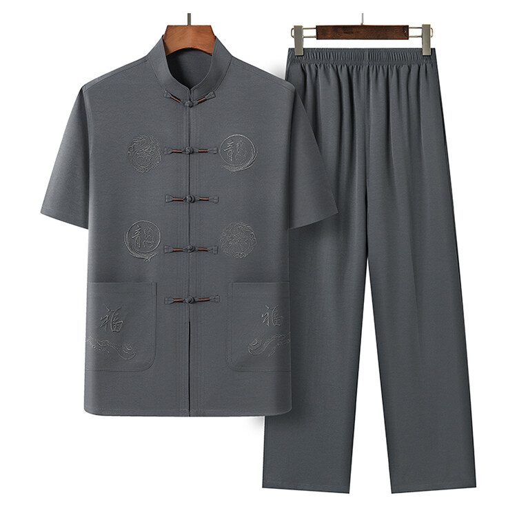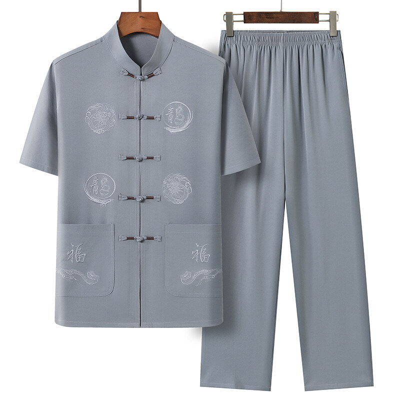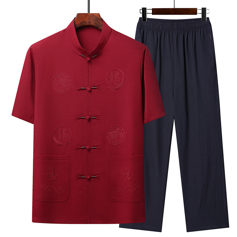 Летний костюм для мужчин среднего и пожилого возраста в стиле тан, 2025, короткий рукав, китайский стиль, для папы и дедушки