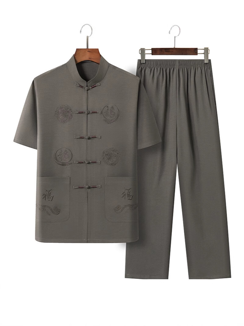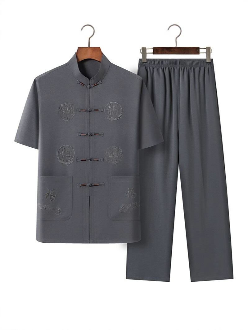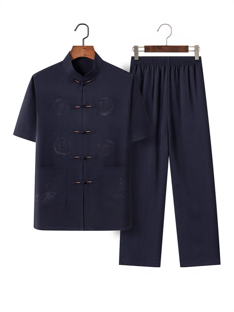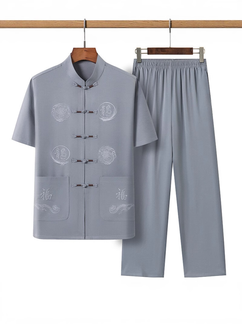 Летний костюм для мужчин среднего и пожилого возраста в стиле тан, 2025, короткий рукав, китайский стиль, для папы и дедушки