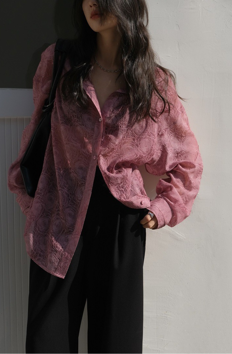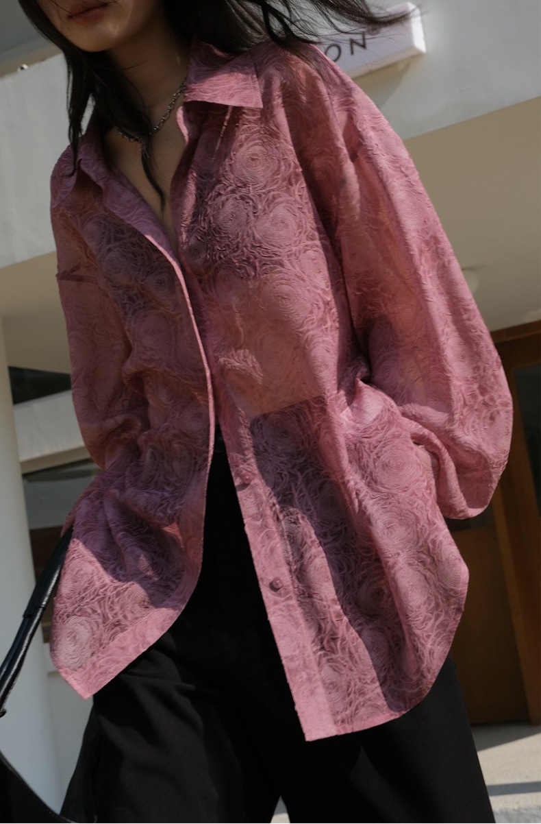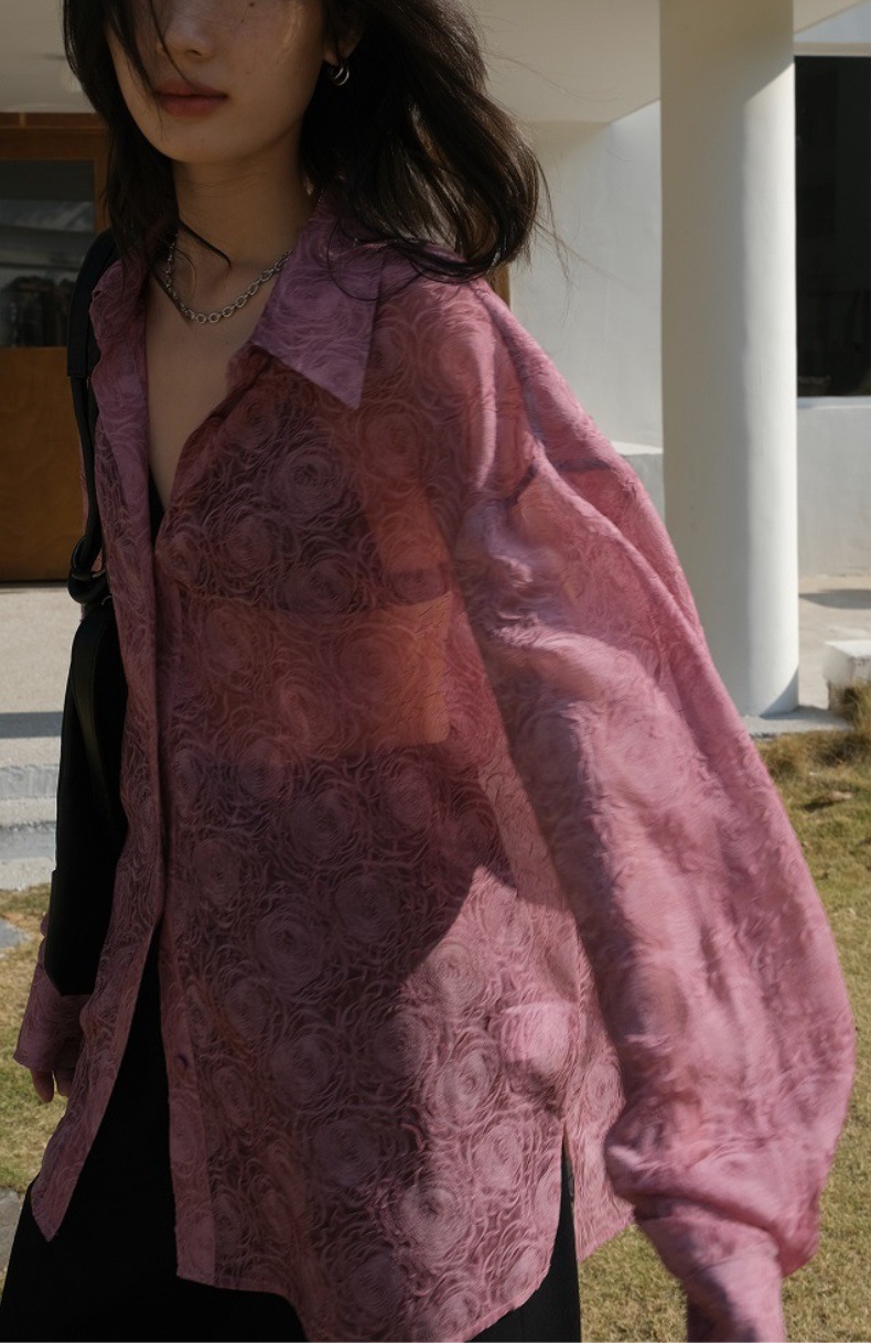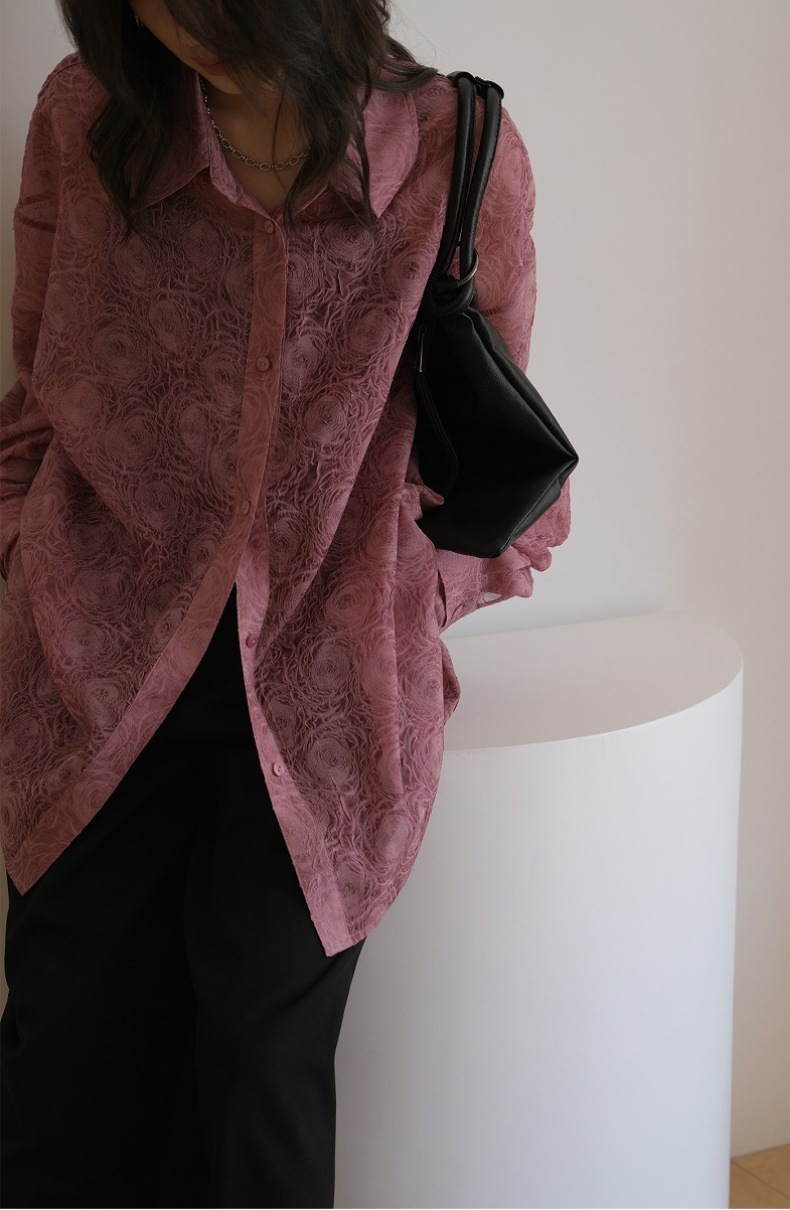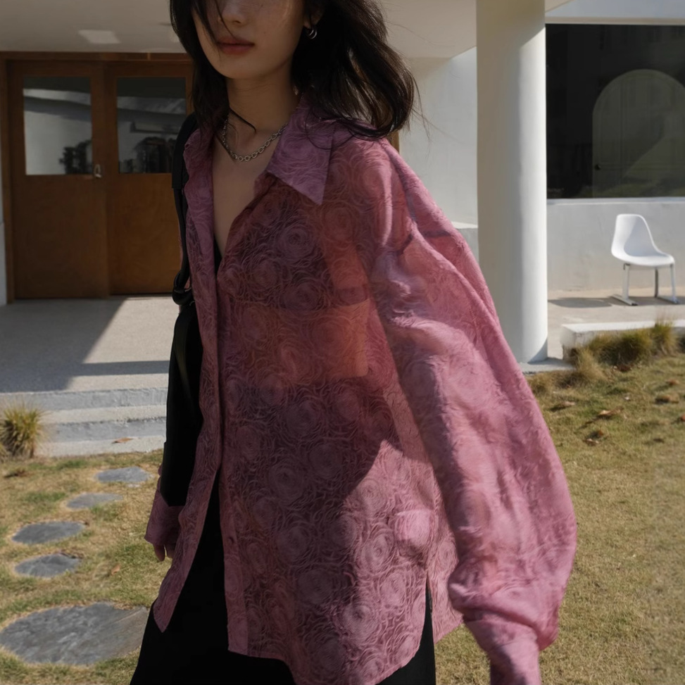 Премиум чувство тиснения дизайн солнцезащитный крем рубашка женская микро-прозрачная летняя шикарная рубашка ленивый солнцезащитный топ с длинными рукавами