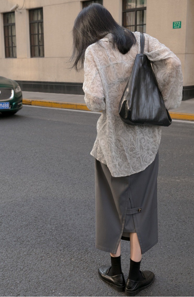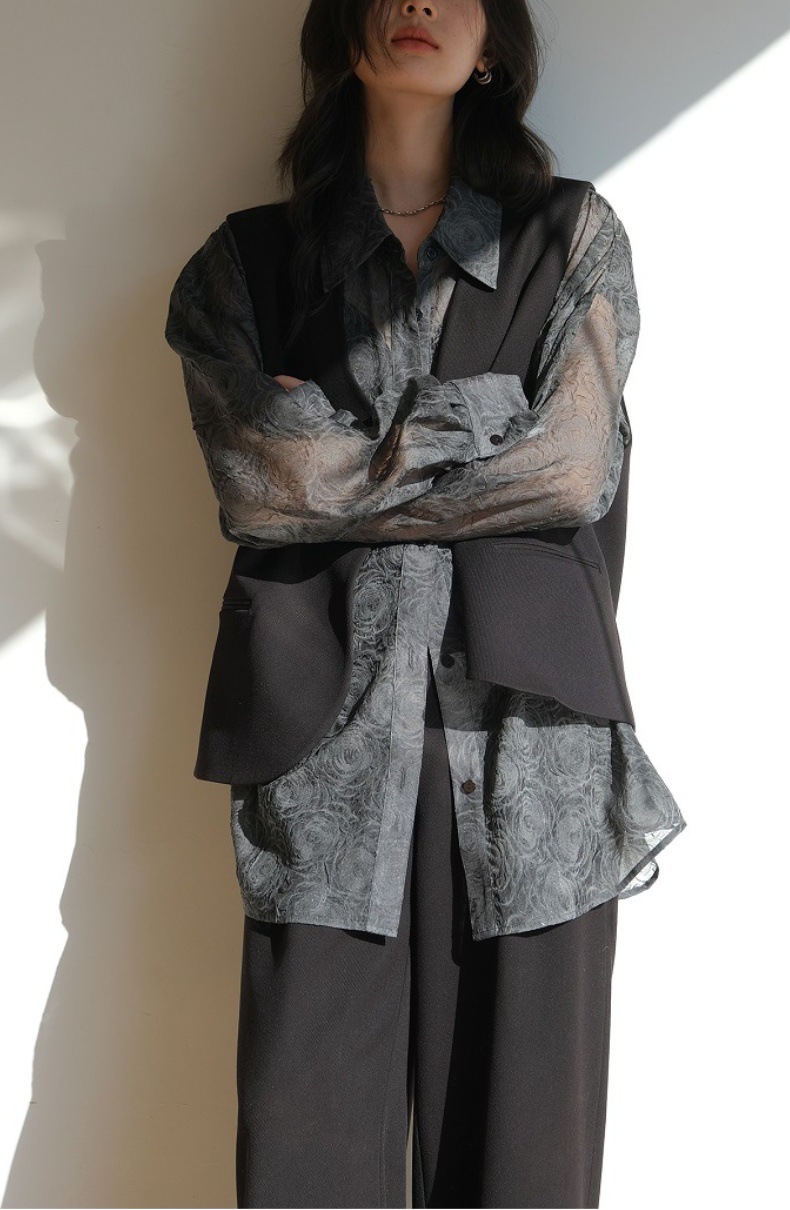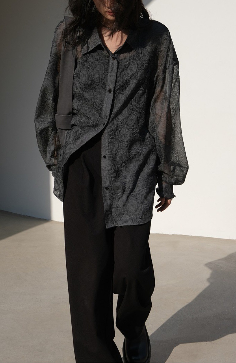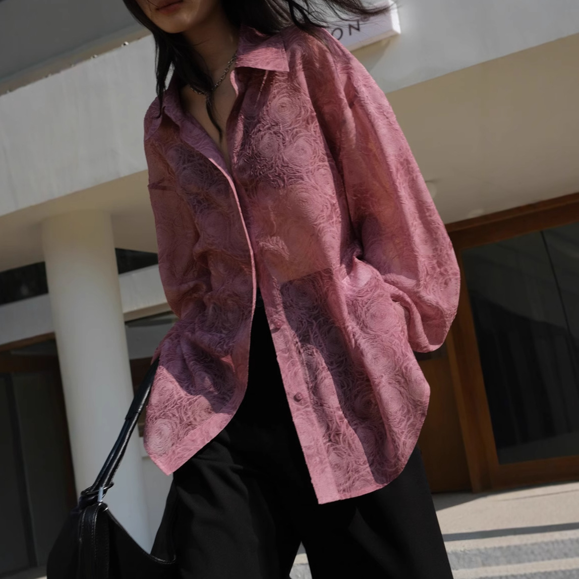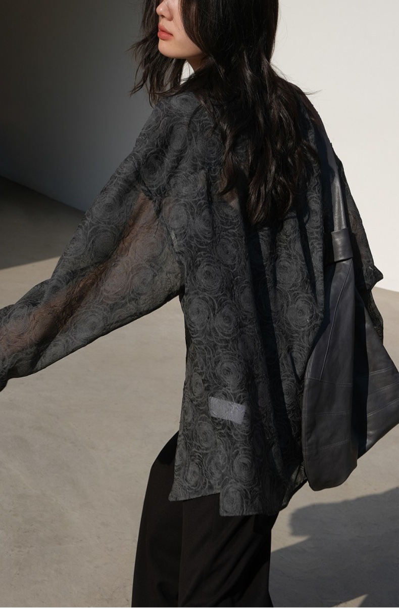 Премиум чувство тиснения дизайн солнцезащитный крем рубашка женская микро-прозрачная летняя шикарная рубашка ленивый солнцезащитный топ с длинными рукавами