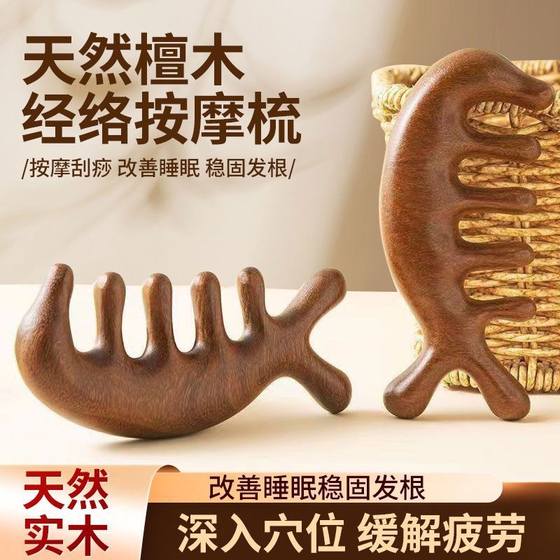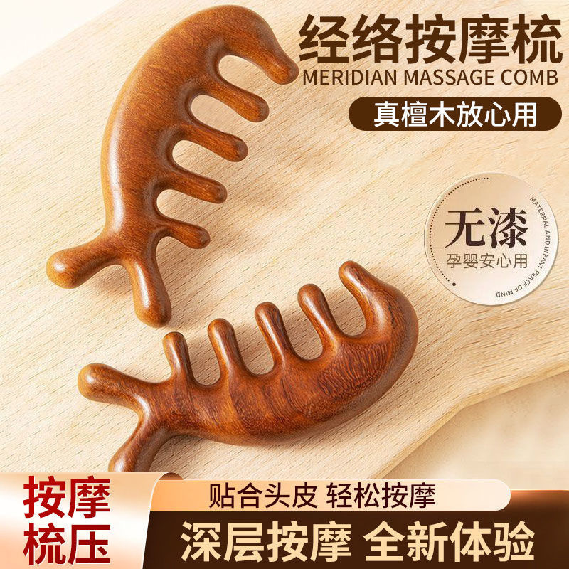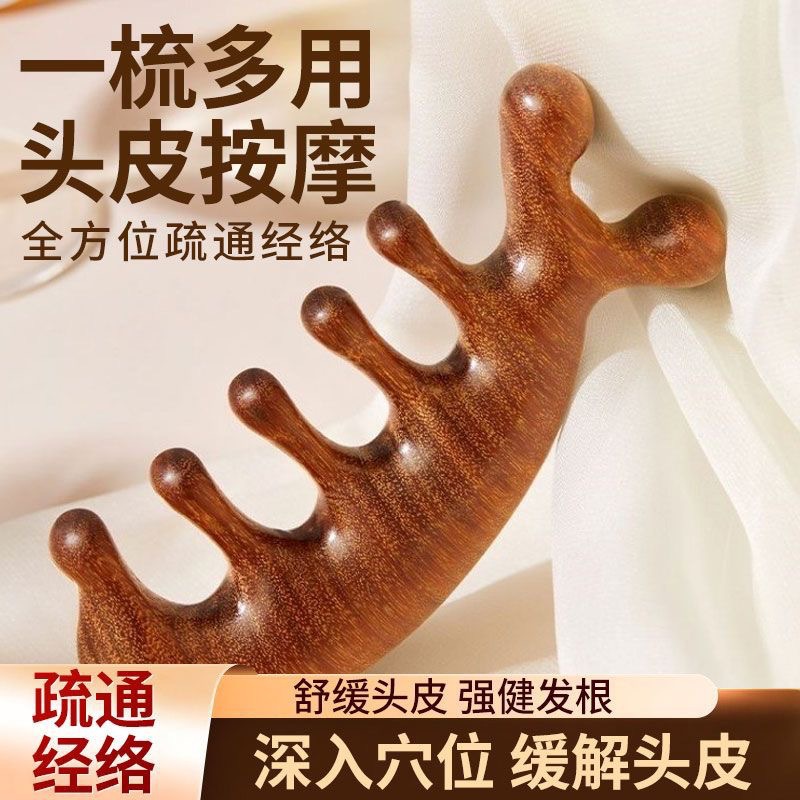 Многофункциональная массажная расческа, расческа для меридианов головы, расческа из натурального сандалового дерева, соскабливание глаз, плеч, шеи и лица, утолщенные широкие зубцы.