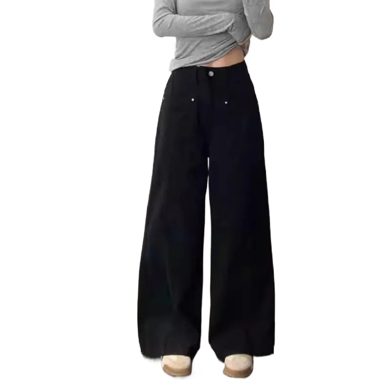 Американские черные широкие джинсы для женщин, зима 2024, новый дизайн, прямые брюки в пол