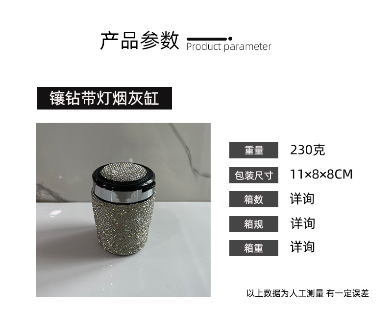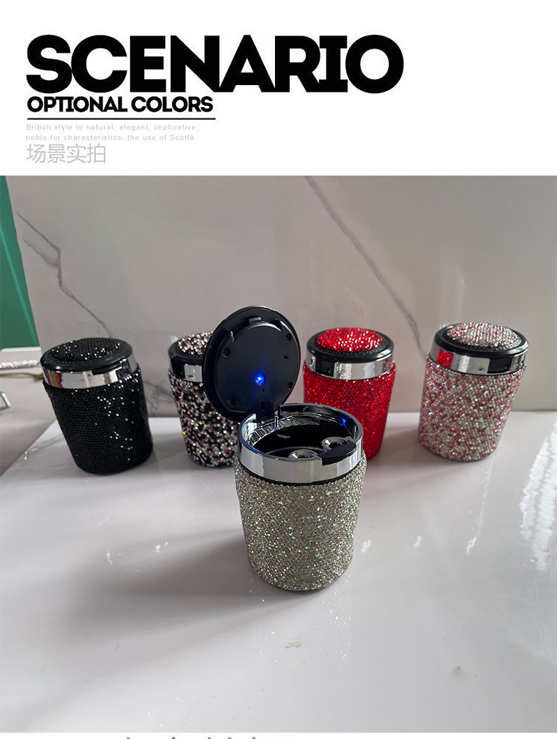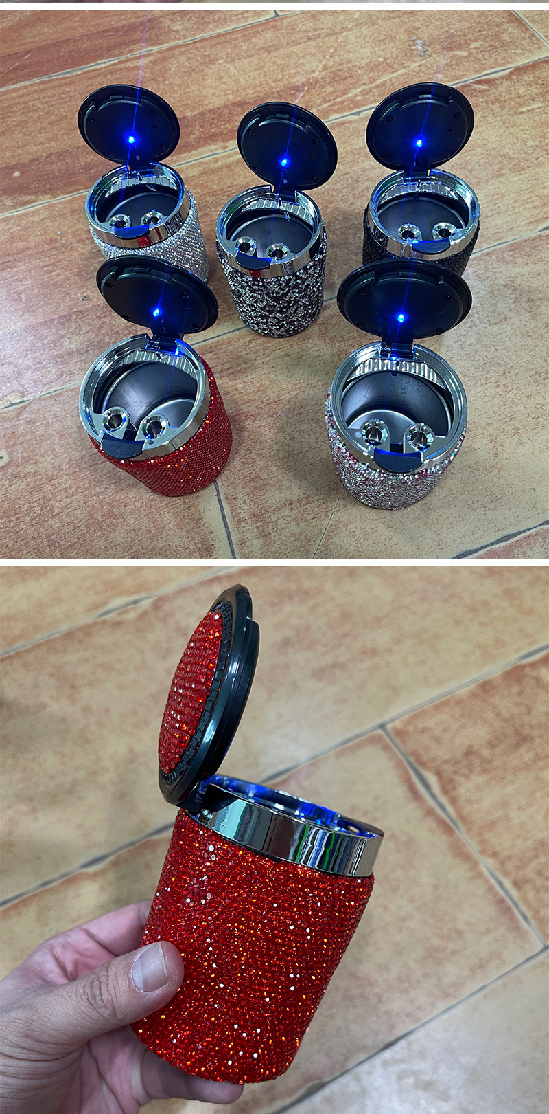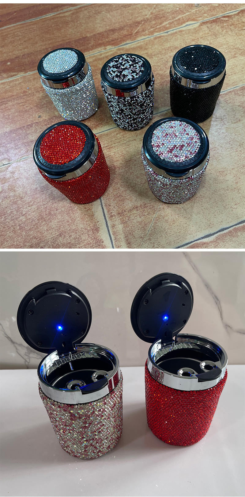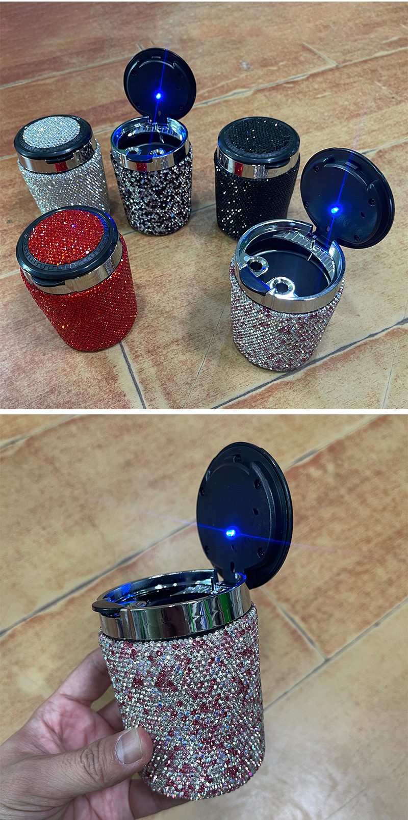 Автомобильная пепельница с бриллиантами для использования в автомобилях, светодиодная, милая и универсальная пепельница для украшения салона автомобиля с бриллиантами