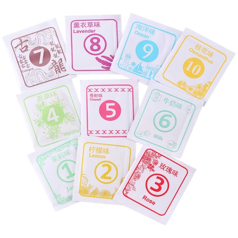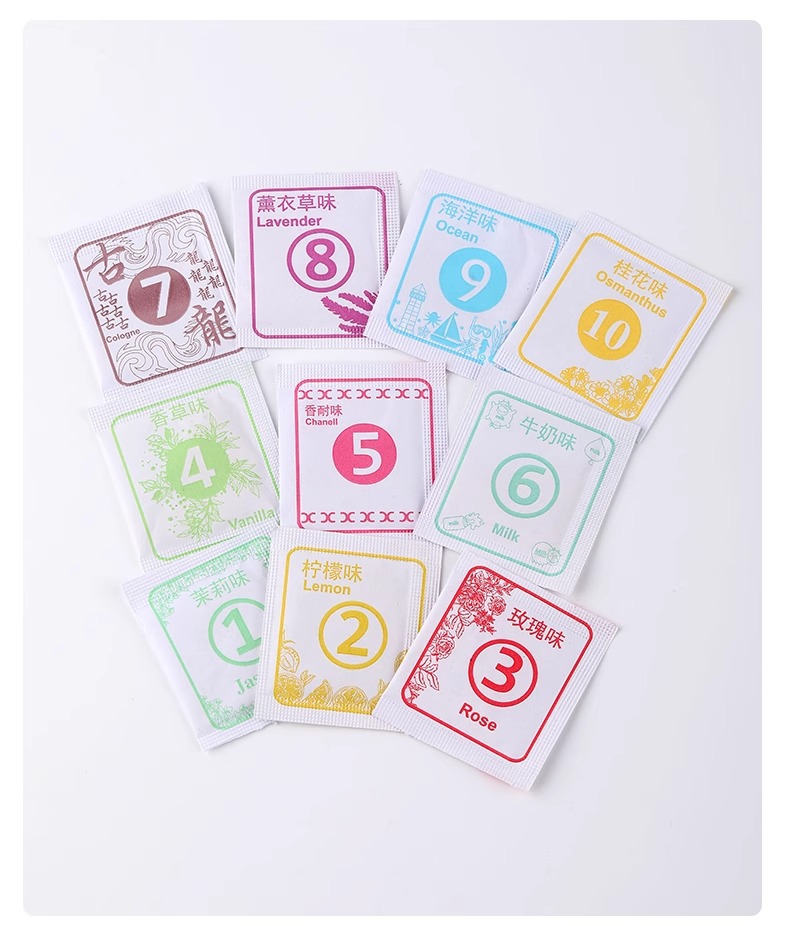Османтус (пожалуйста, возьмите целое кратное 500); Океан (пожалуйста, возьмите целое кратное 500); Лаванда (пожалуйста, возьмите целое число, кратное 500); Кельн (пожалуйста, возьмите целое кратное 500); Молоко (пожалуйста, возьмите целое число, кратное 500); Сян Най (пожалуйста, сделайте фотографию в целочисленном кратном 500); Ваниль (пожалуйста, возьмите целое кратное 500); Роза (пожалуйста, возьмите целое кратное 500); Лимон (пожалуйста, возьмите целое число, кратное 500); Жасмин (пожалуйста, возьмите целое число, кратное 500)