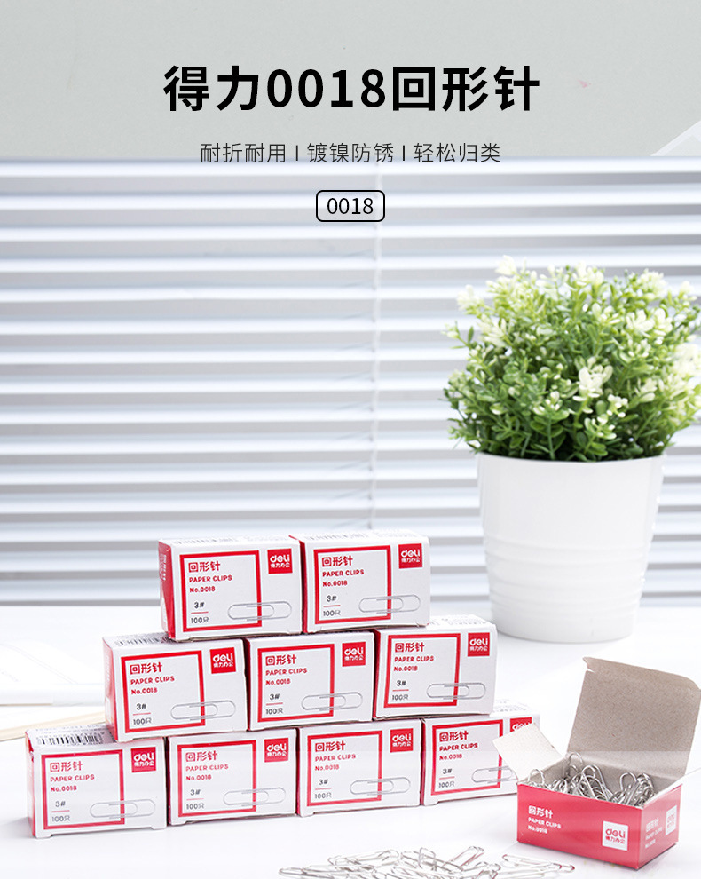 Скрепки Deli 0018 (100 шт./коробка) для учебы, офисных документов, хранения тестовой бумаги, защиты от ржавчины и сбора чеков.
