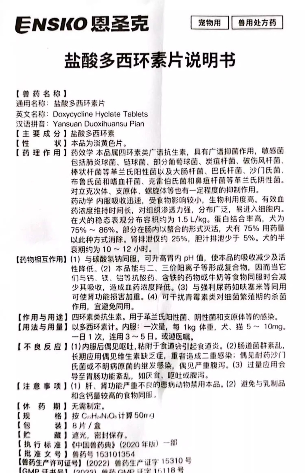 Эншенгке Досцициклин гидрохлорид таблетки кошачие лекарства от простуды чихание, насморк