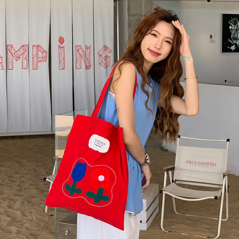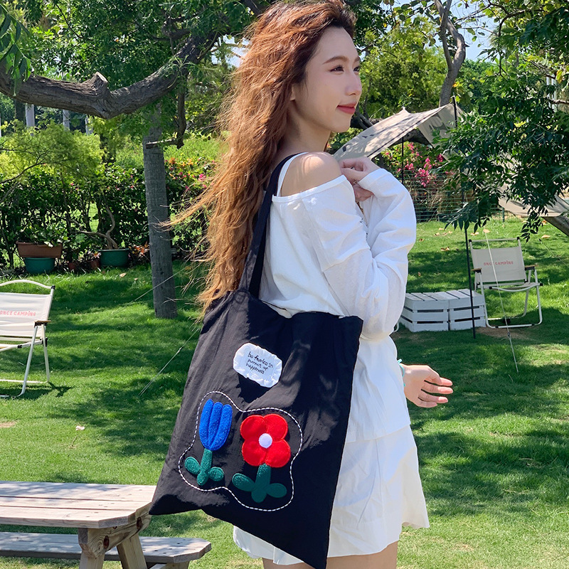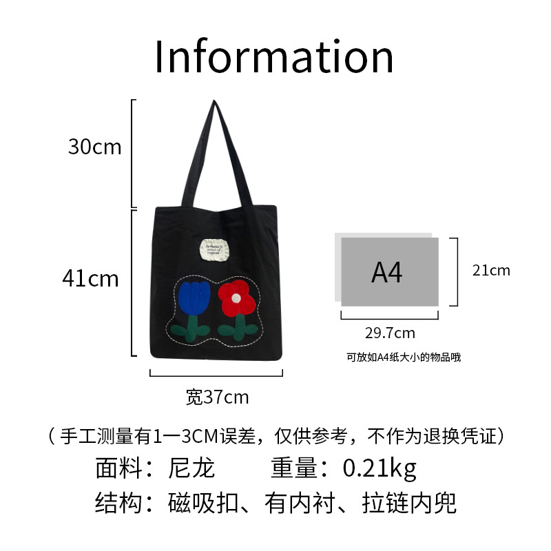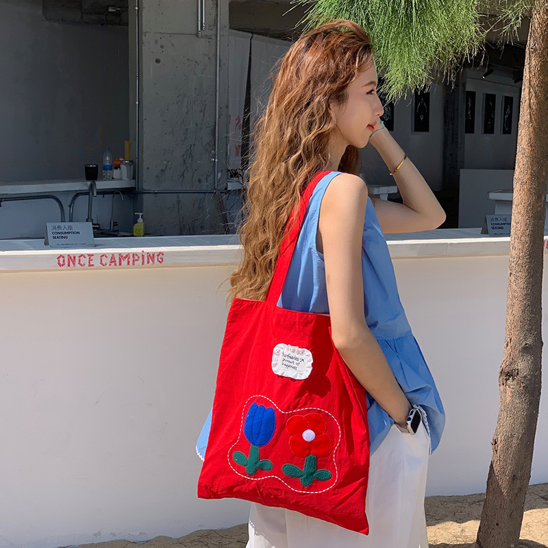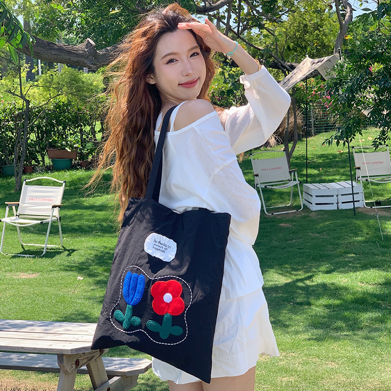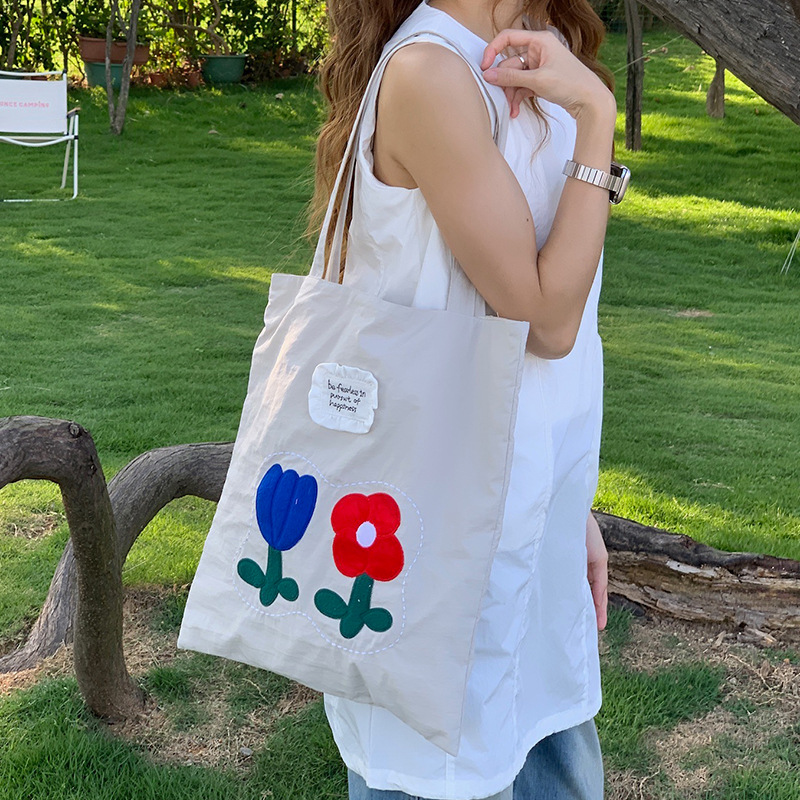 Весна и лето новая сумка на плечо большая емкость нейлон корейская минималистская сумка с дикой вышивкой женская сумка