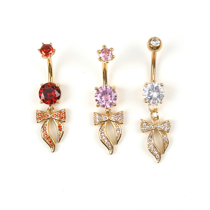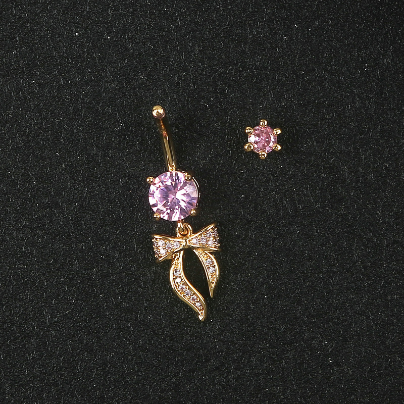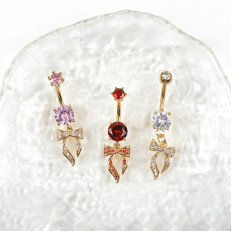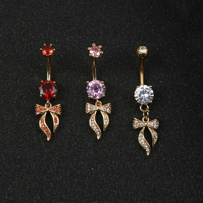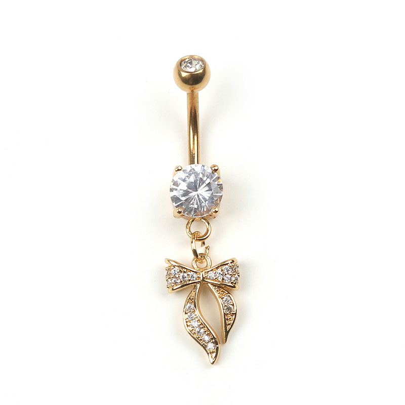 Подвеска-бантик для пупка из нержавеющей стали с цирконами, микроинкрустация цирконами, украшение для пирсинга пупка