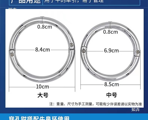 Кольцо для быка из литой стали, кольцо для быка, зажим для носа теленка, стальное кольцо для тяги быка, большой перфорированный зажим для носа из нержавеющей стали