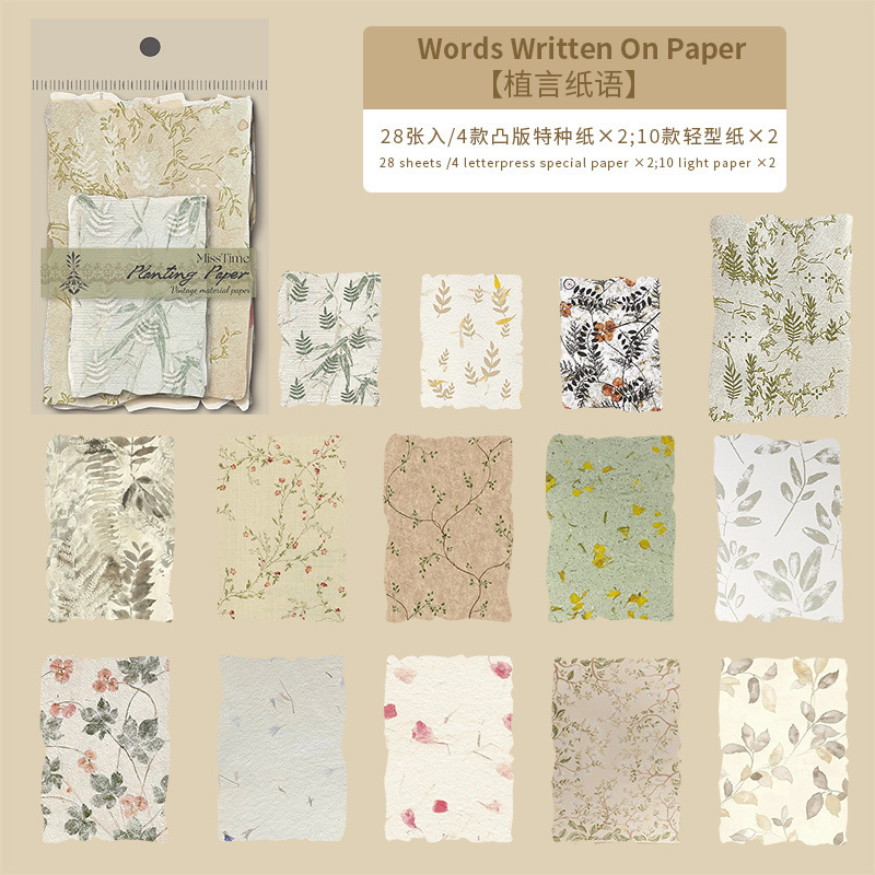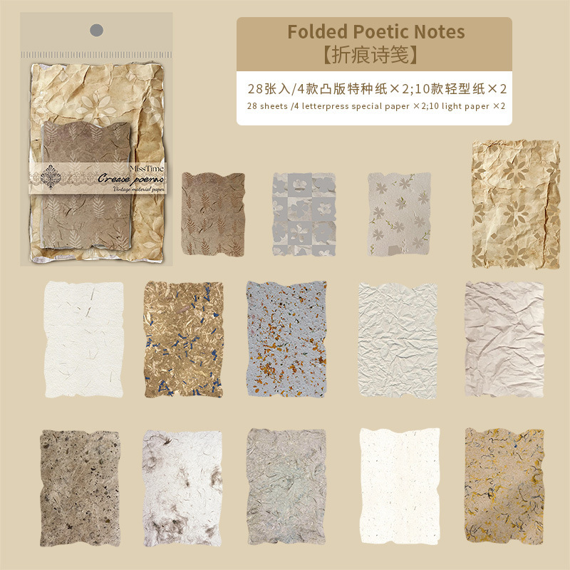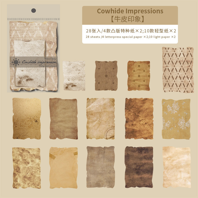 Веселье из тканевой бумаги; Впечатление из коровьей кожи; Бумажная рябь; Складка стихотворения; следы времени; Растительные слова