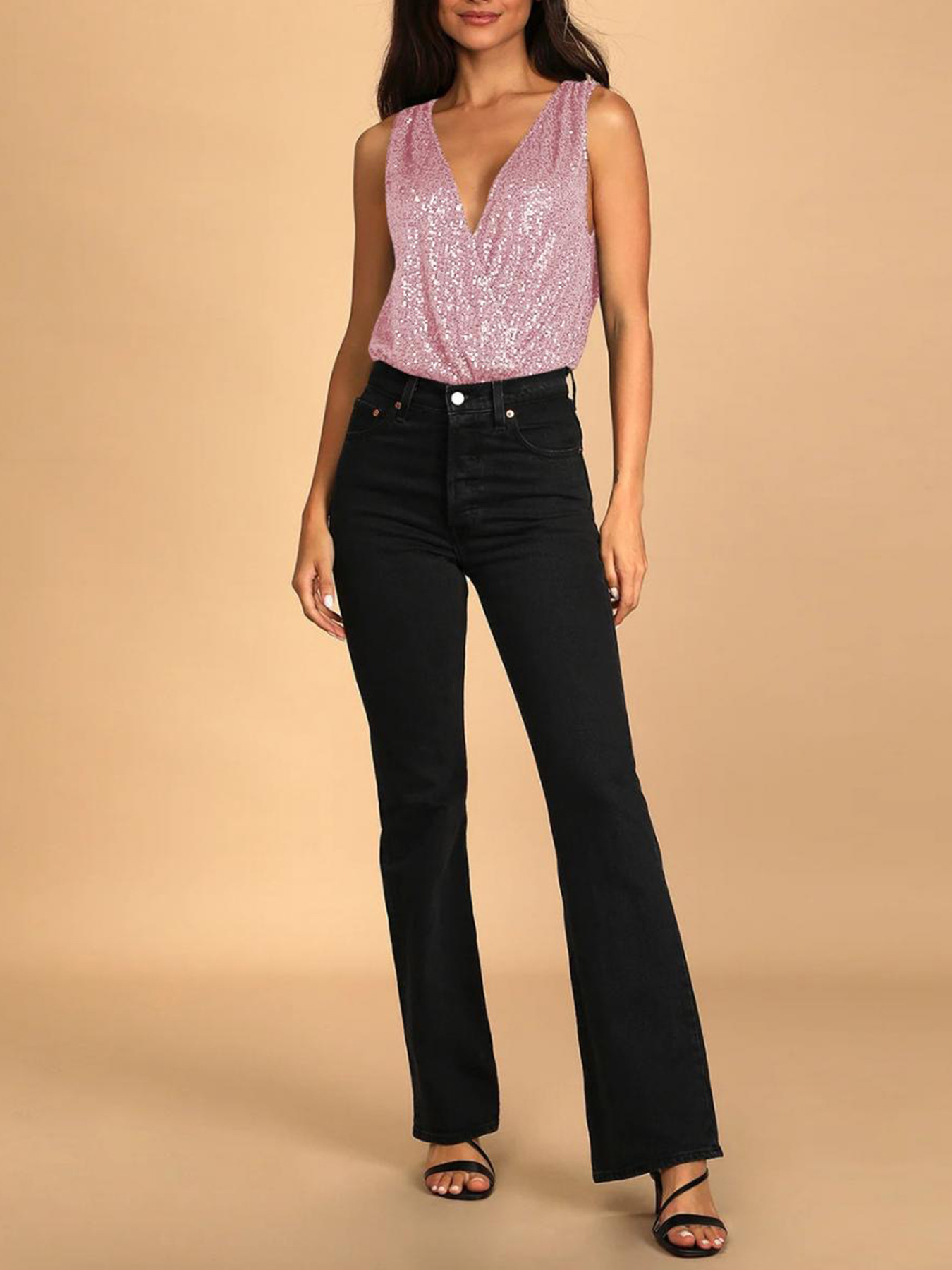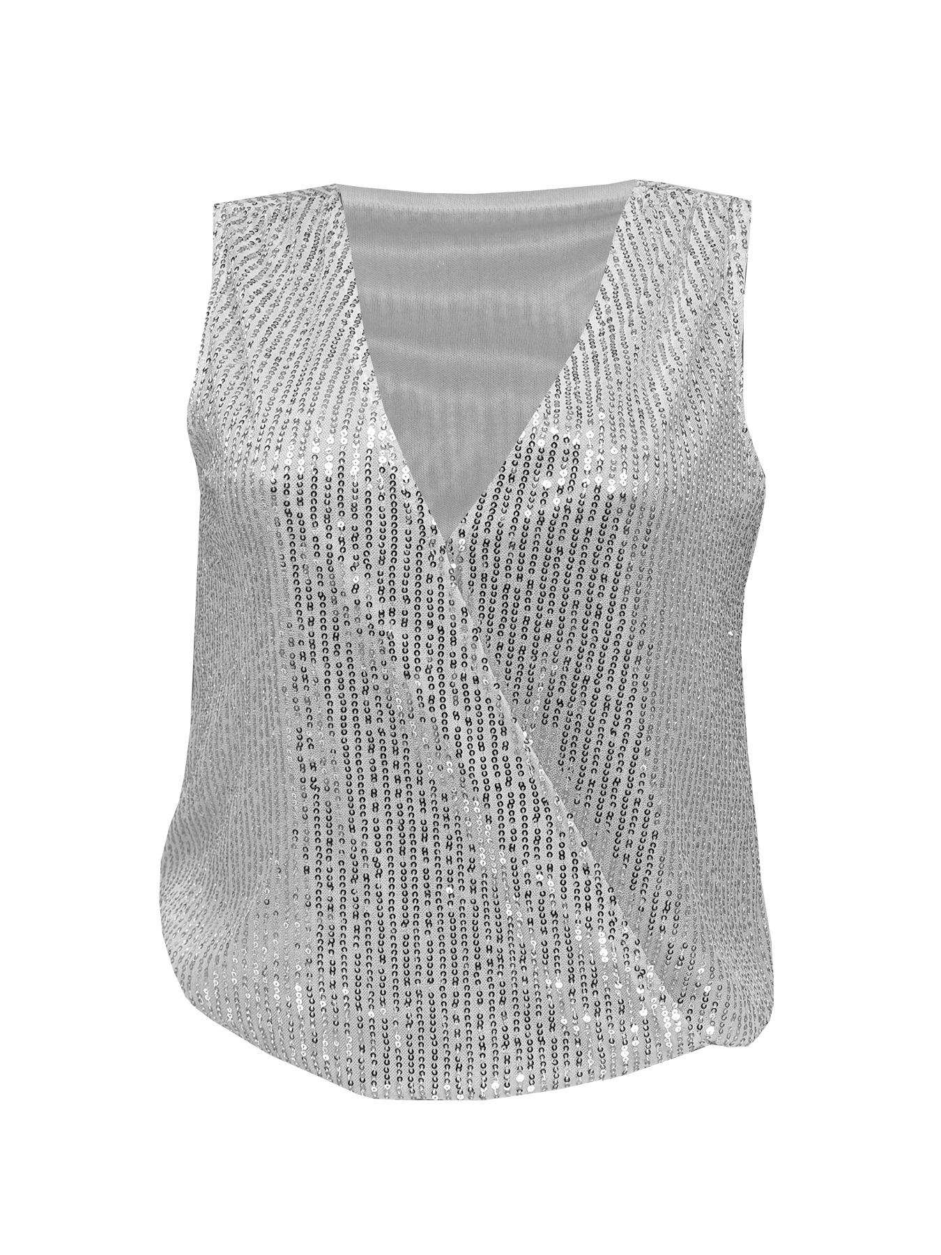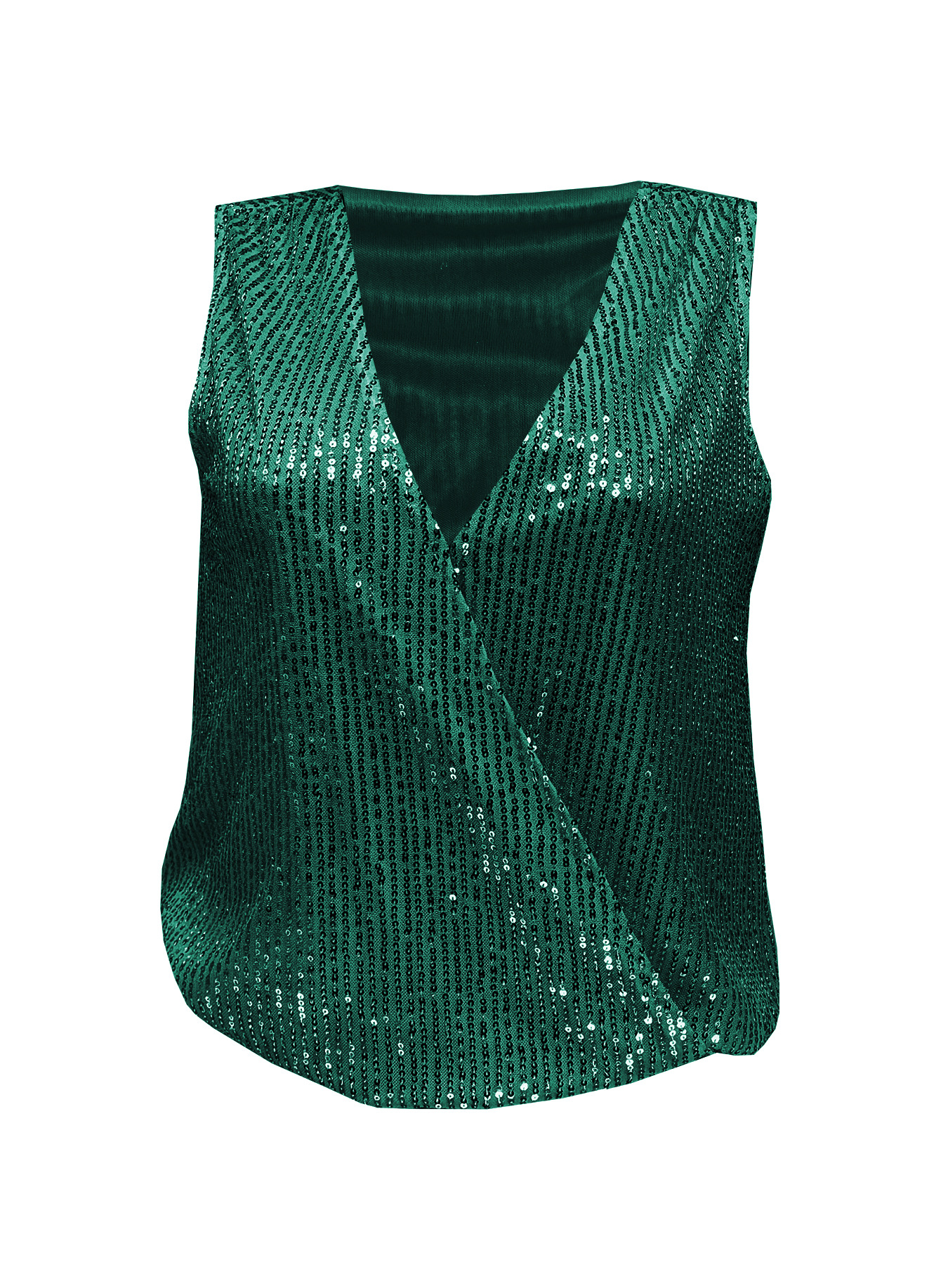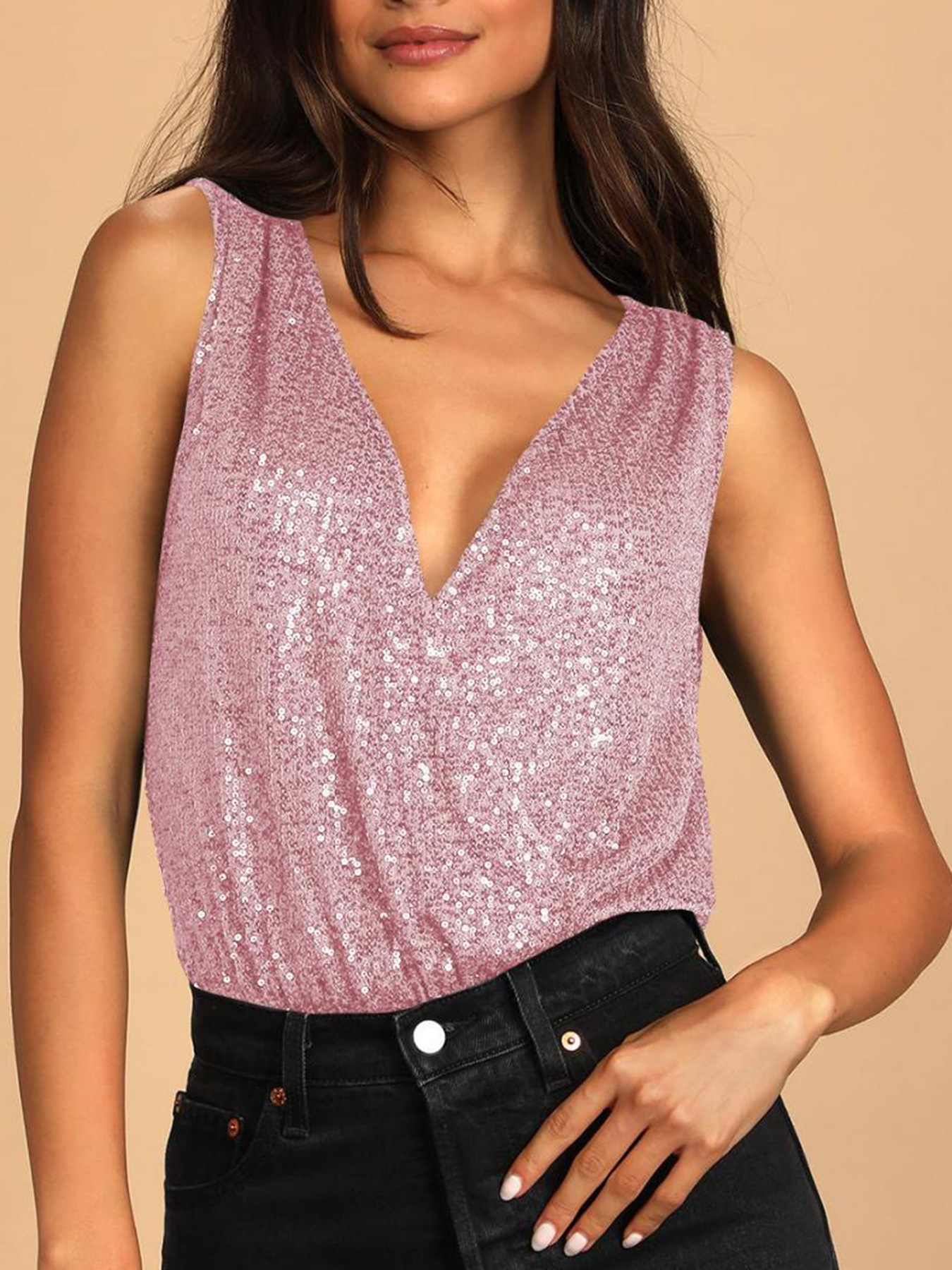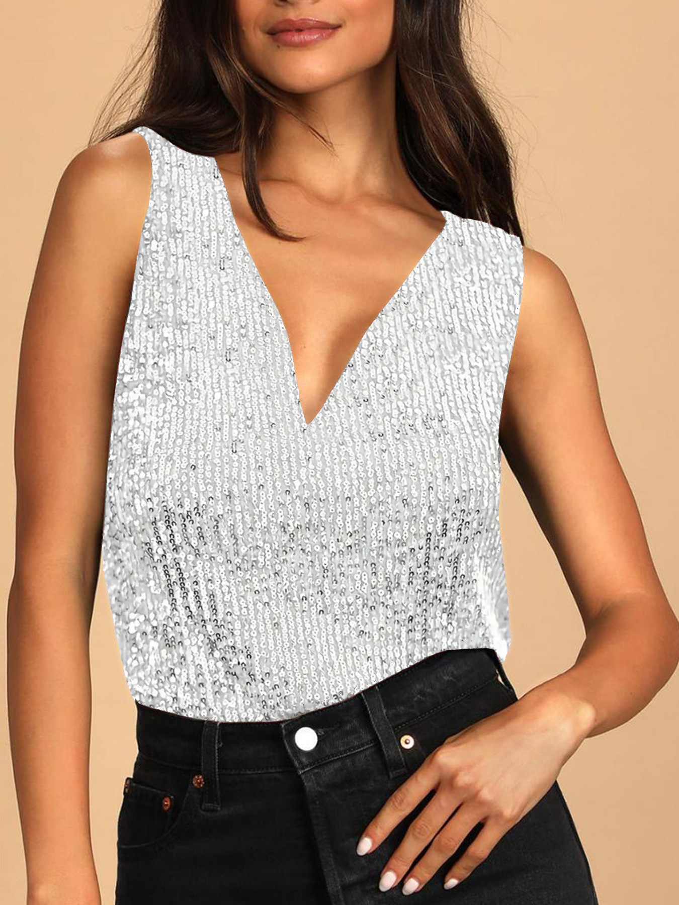Европейская и американская женская мода, летняя новинка, вечерние жилеты с v-образным вырезом и блестками