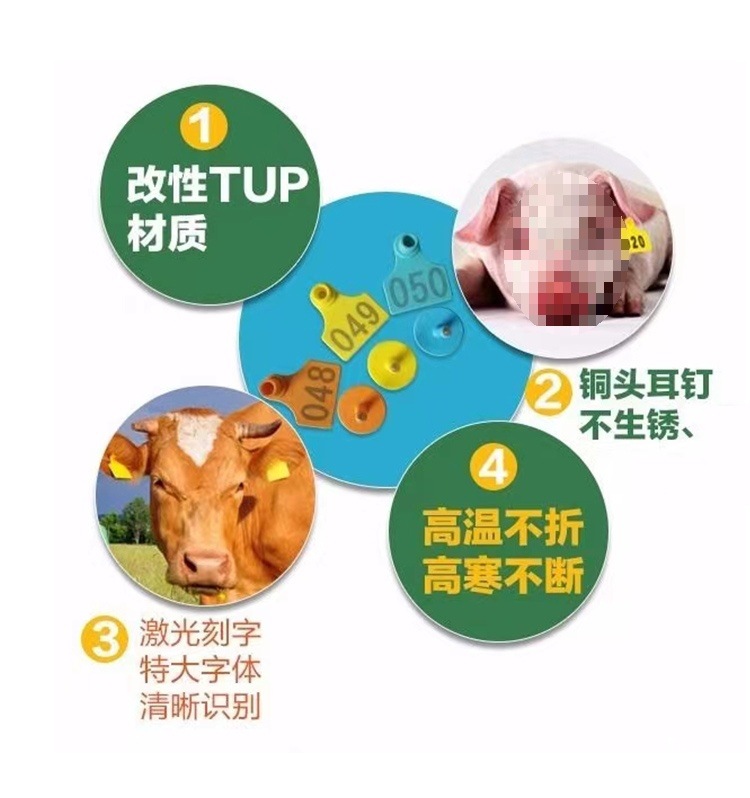 Ушные бирки для свиней, крупного рогатого скота и овец, ушные идентификационные бирки, ветеринарные ушные бирки, ушные бирки для свиней с текстом, 100 плоскогубцев для маркировки фермы.
