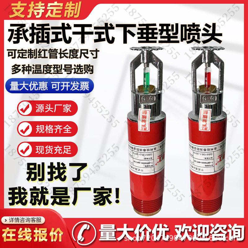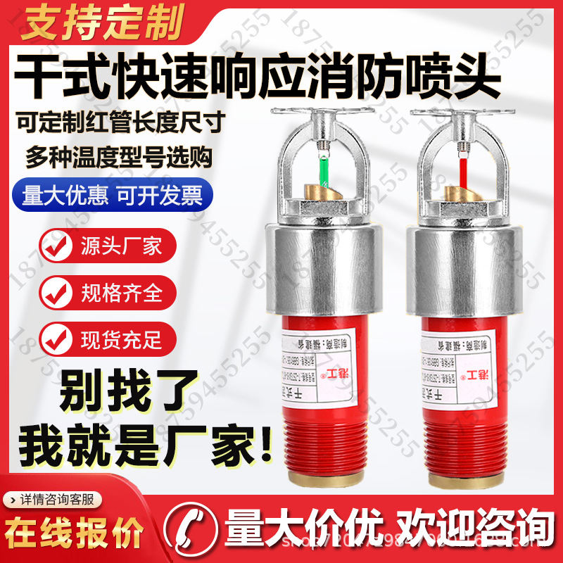 Сухая провисающая спринклерная головка, антифризная спринклерная головка, 68 градусов, 93 градуса, K80K115, предварительная подготовка, 3C, огнестойкая сухая спринклерная головка