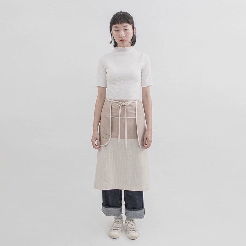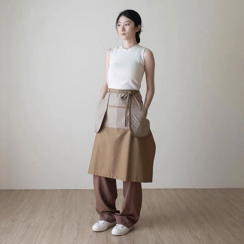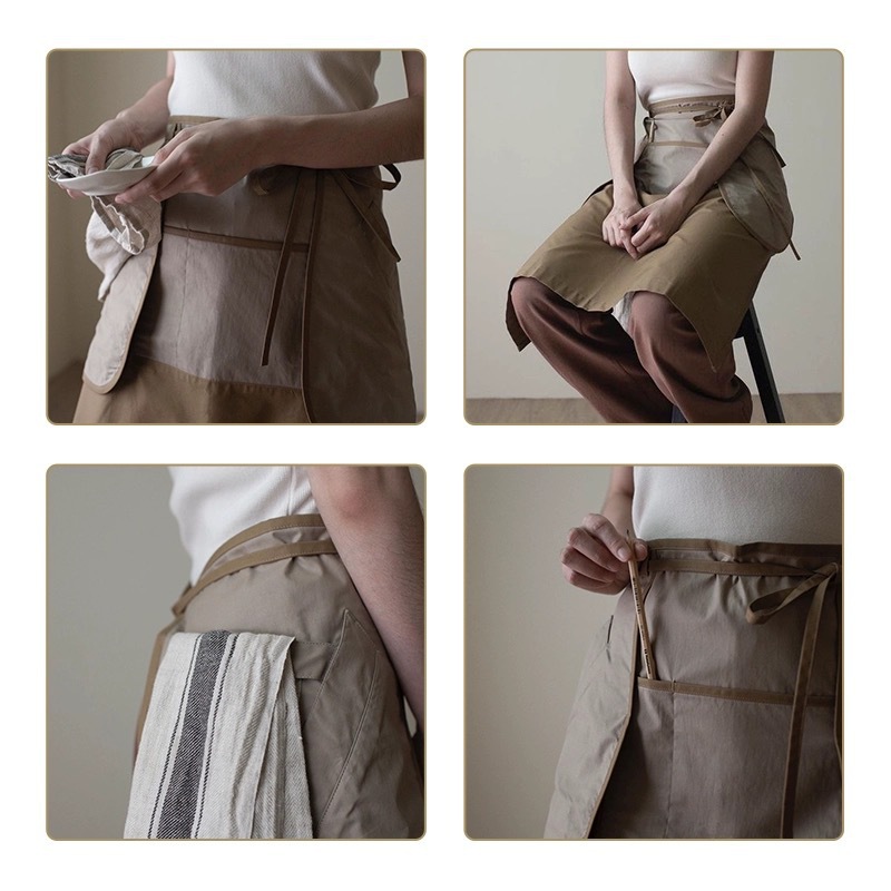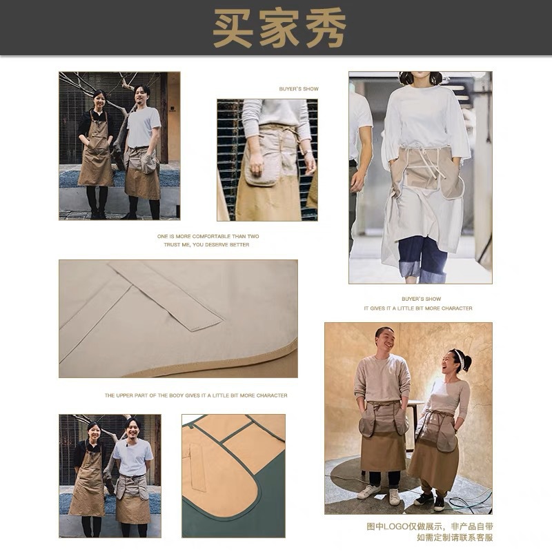 日系半身围裙家用撞色男女咖啡餐饮烘焙店定制logo工作服围腰