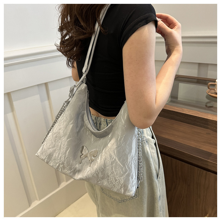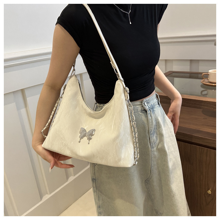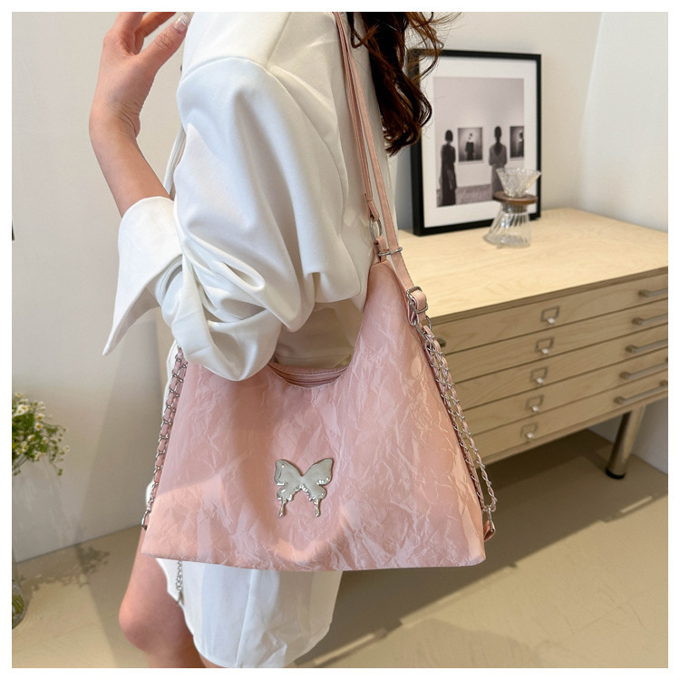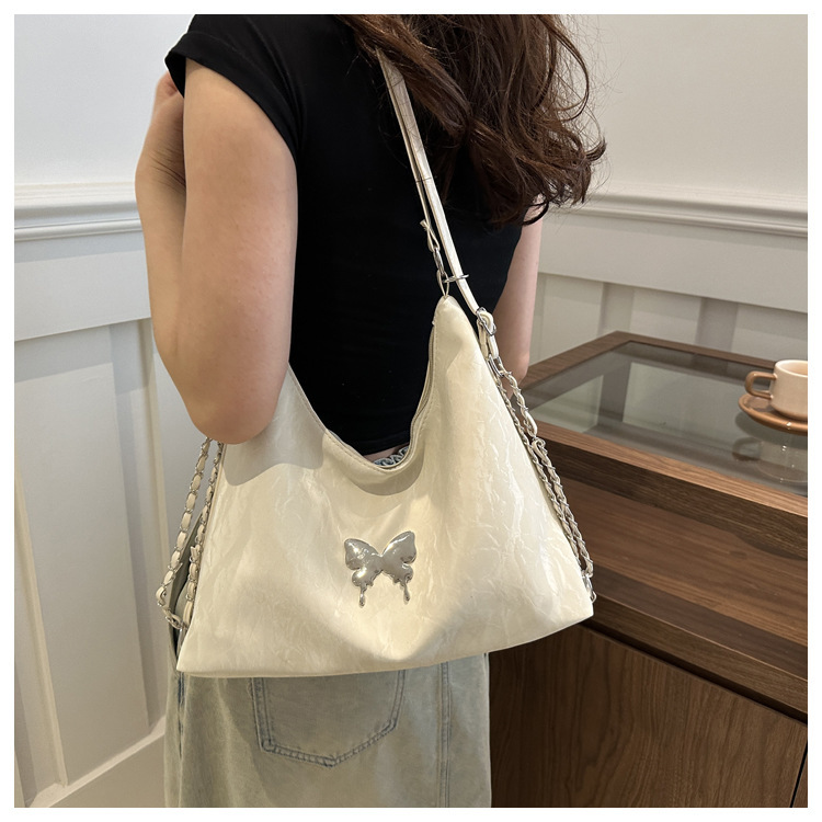 Большая емкость нежная текстура нишевого дизайна дикая бабочка сумка на плечо женская весна и лето сумка на плечо Тотельная сумка 2025