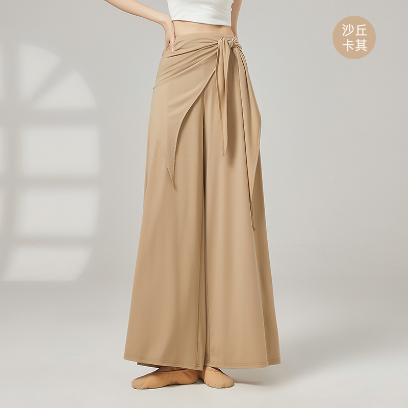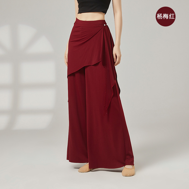 Широкие брюки для танцев с юбкой из искусственного материала, классические танцевальные брюки, длинные брюки с драпировкой, костюм для тренировок по китайскому танцу.
