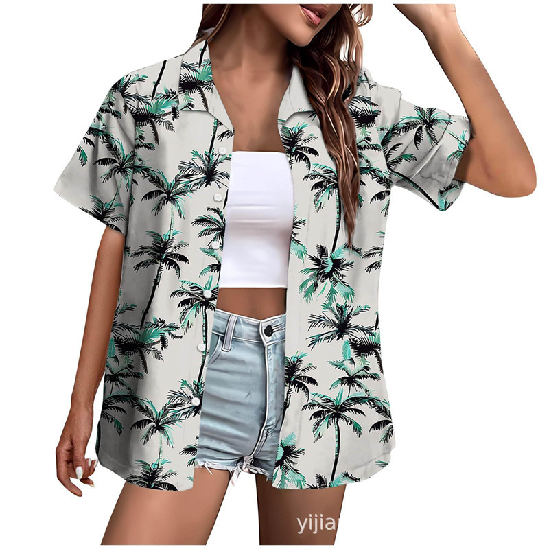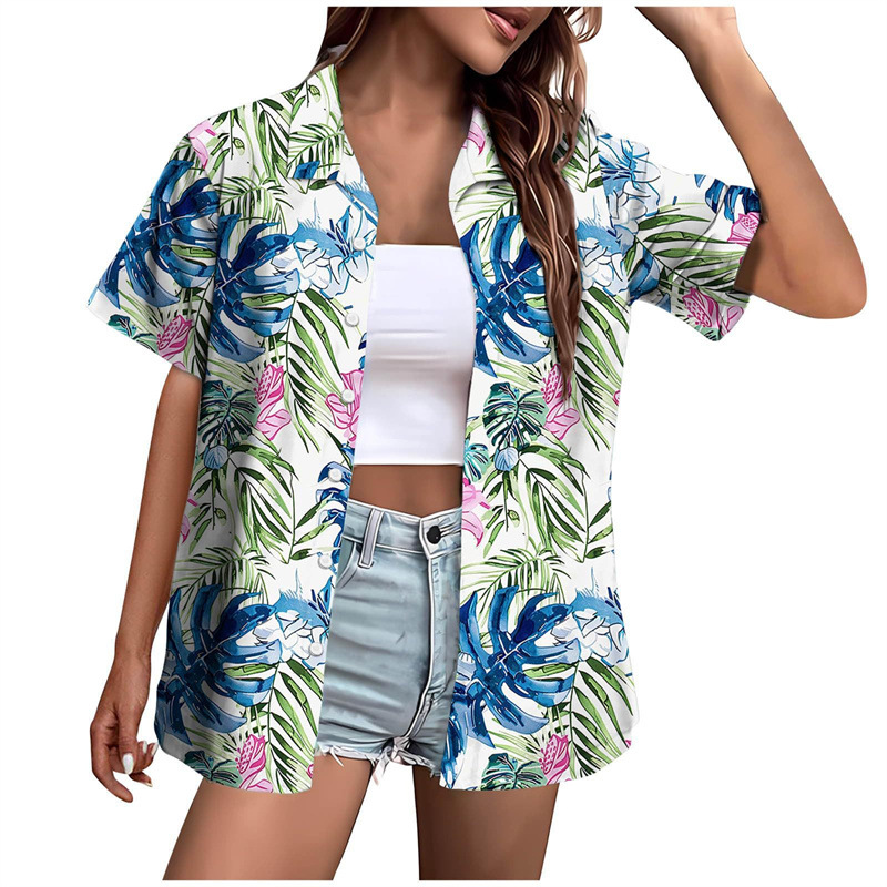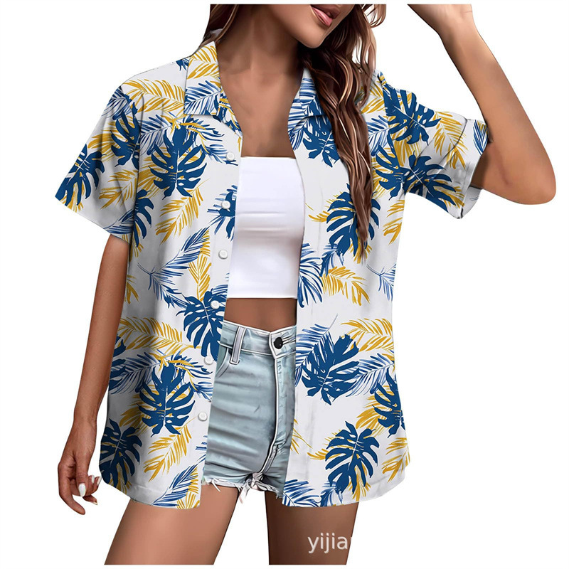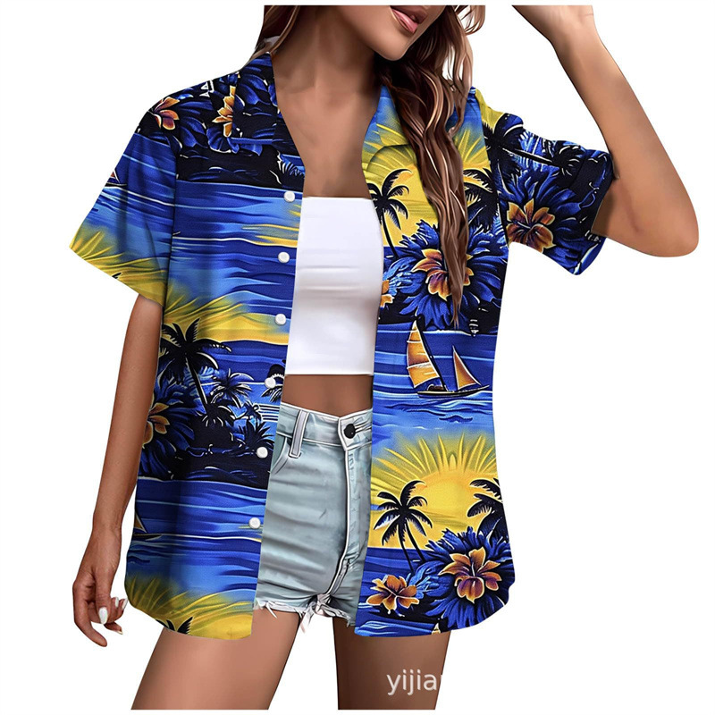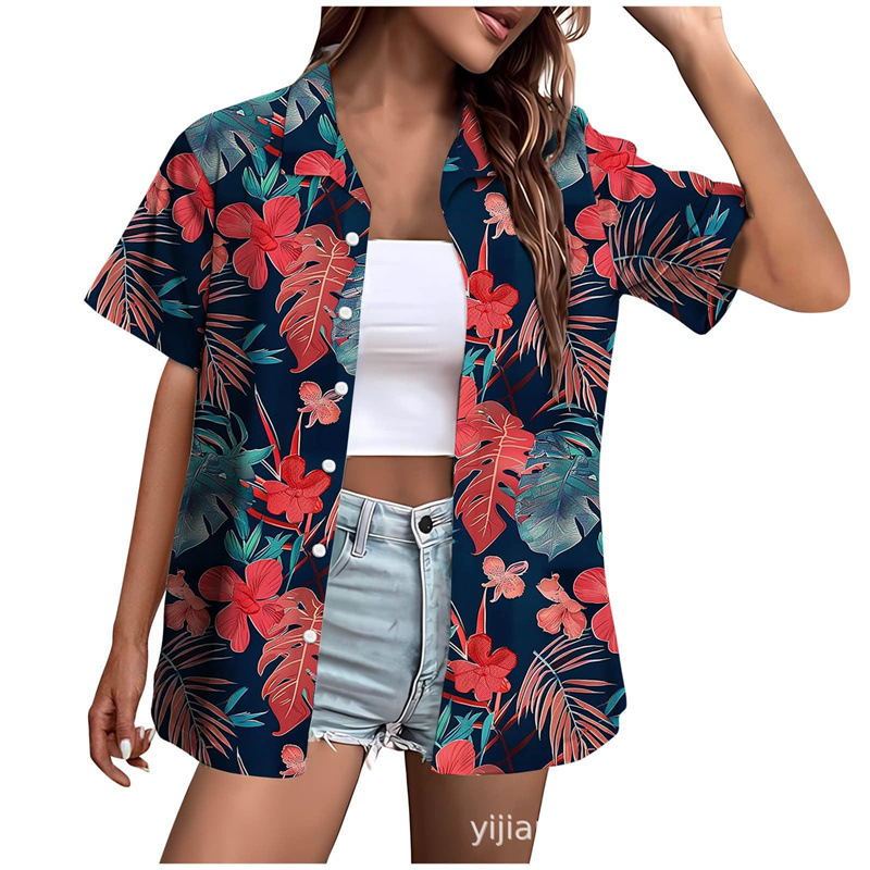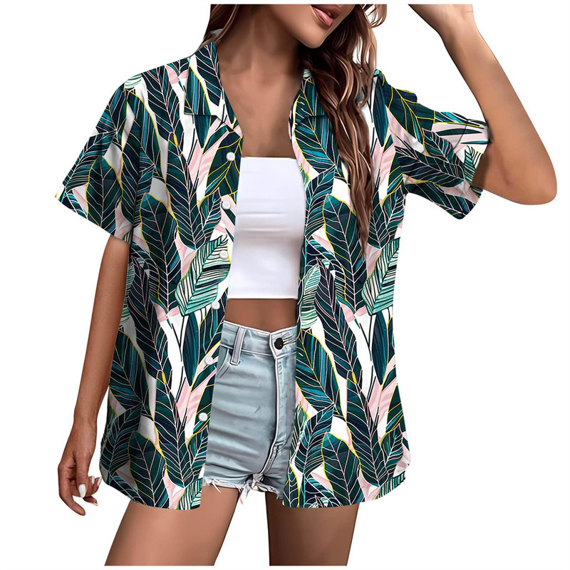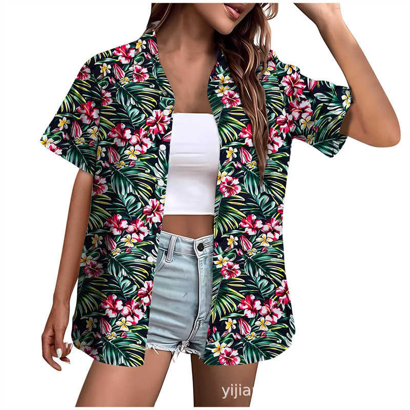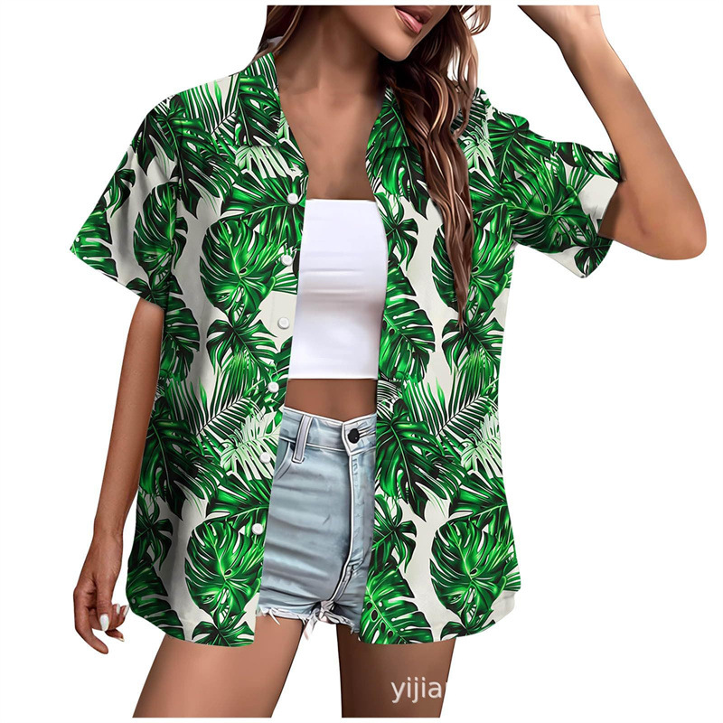 Женская свободная гавайская рубашка с коротким рукавом и 3D-печатью Amazon 2025 года, для отдыха