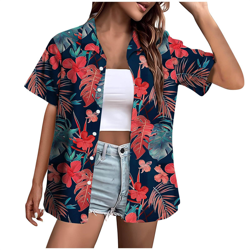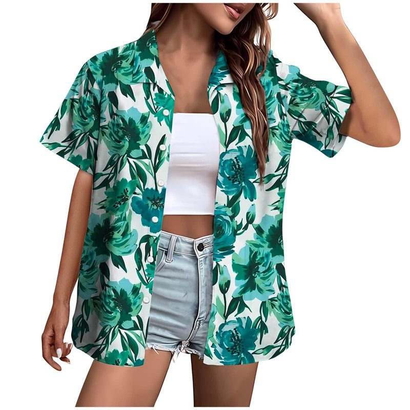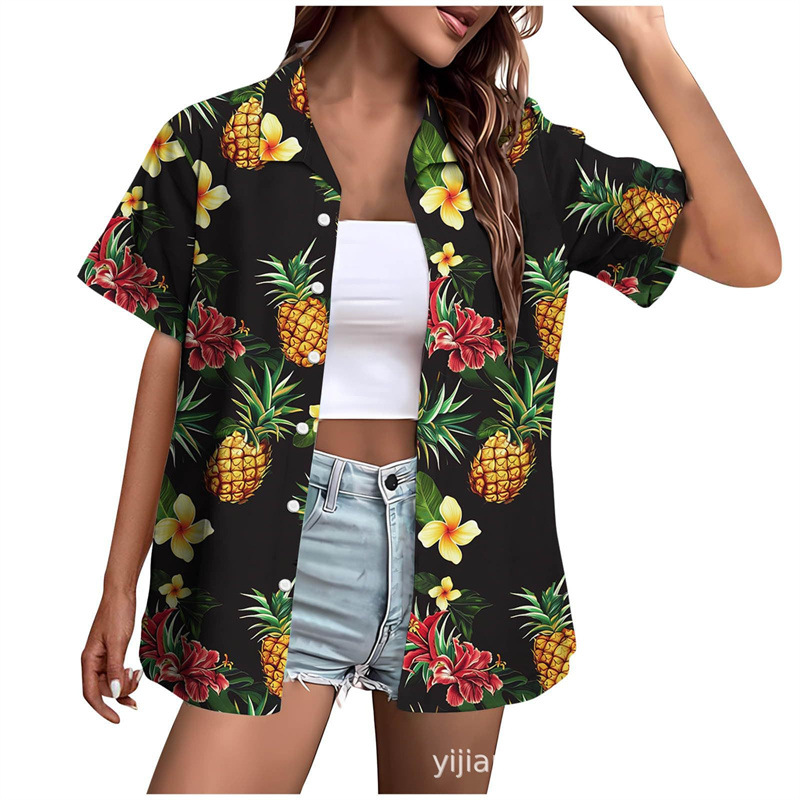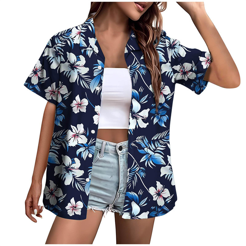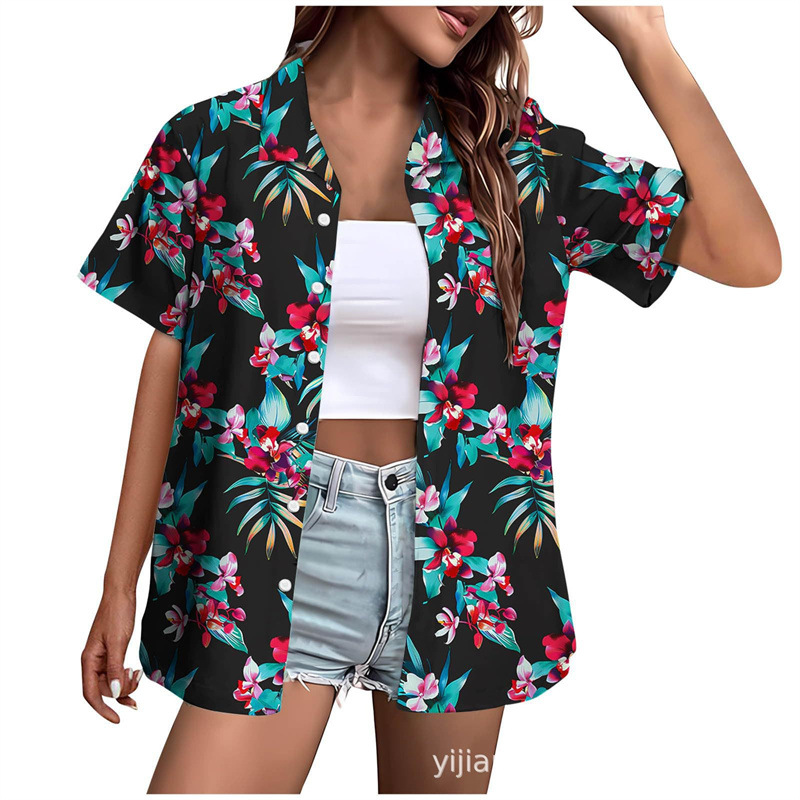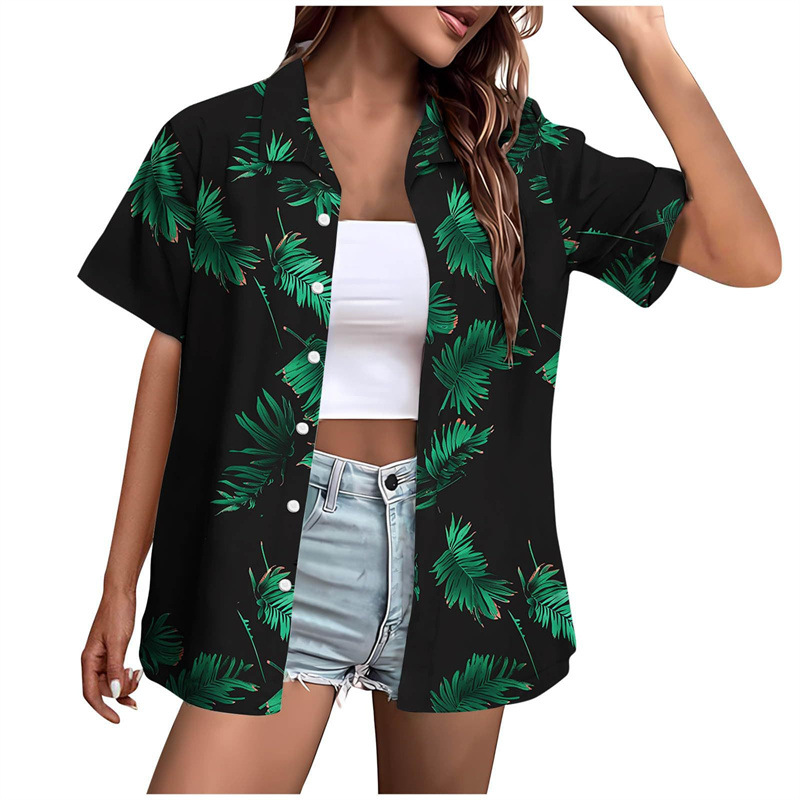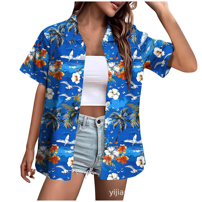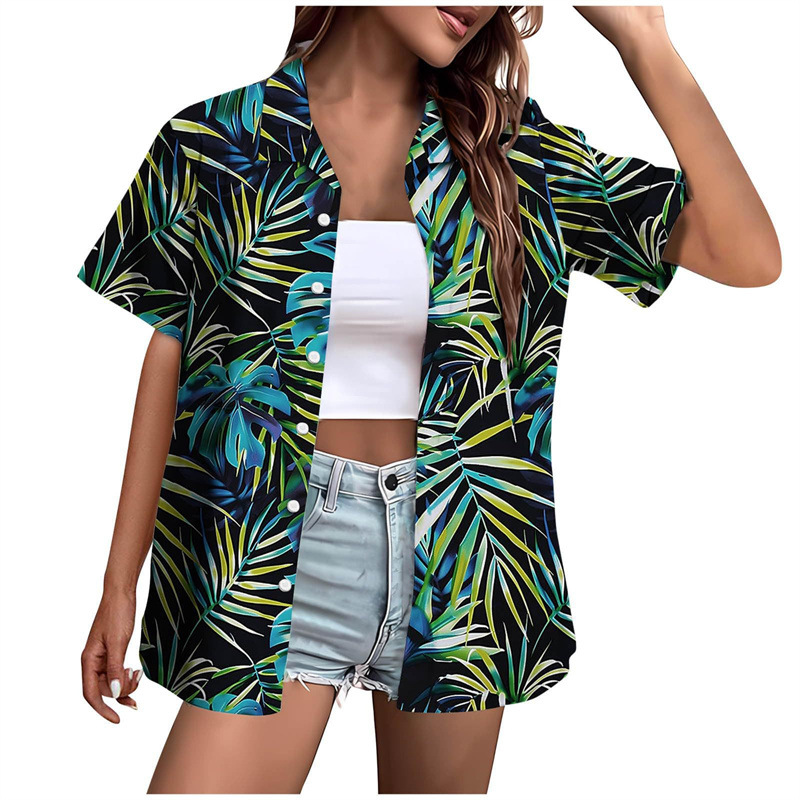 Женская свободная гавайская рубашка с коротким рукавом и 3D-печатью Amazon 2025 года, для отдыха