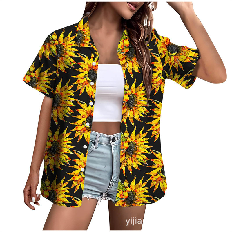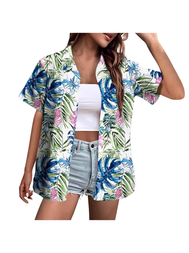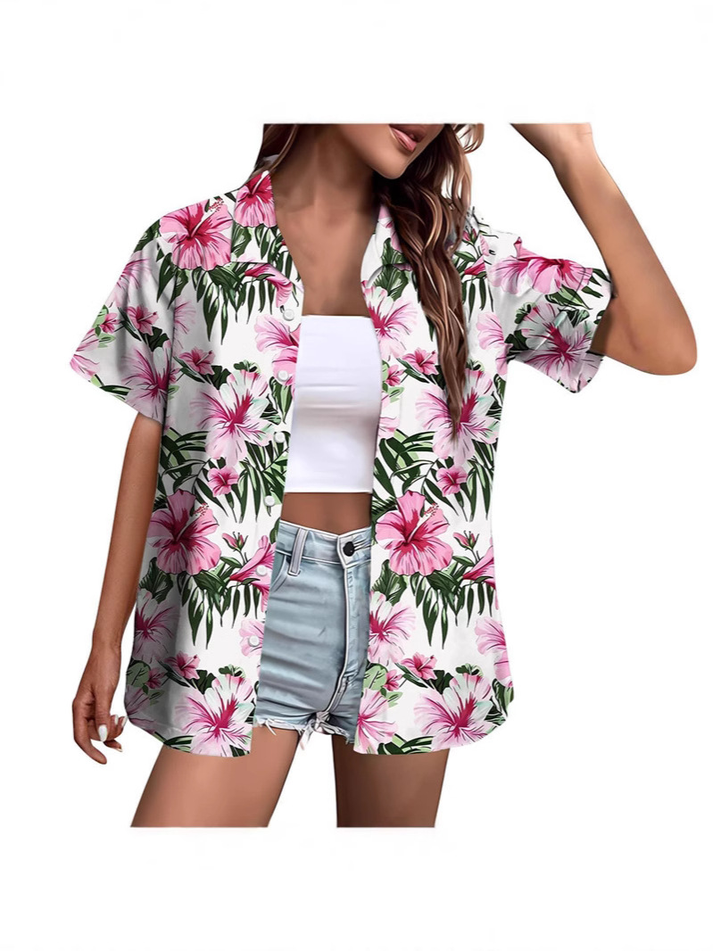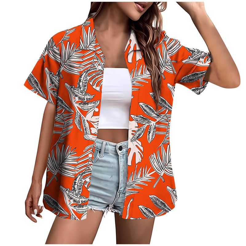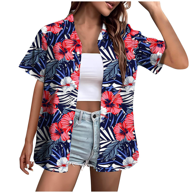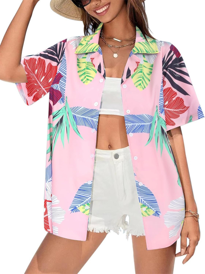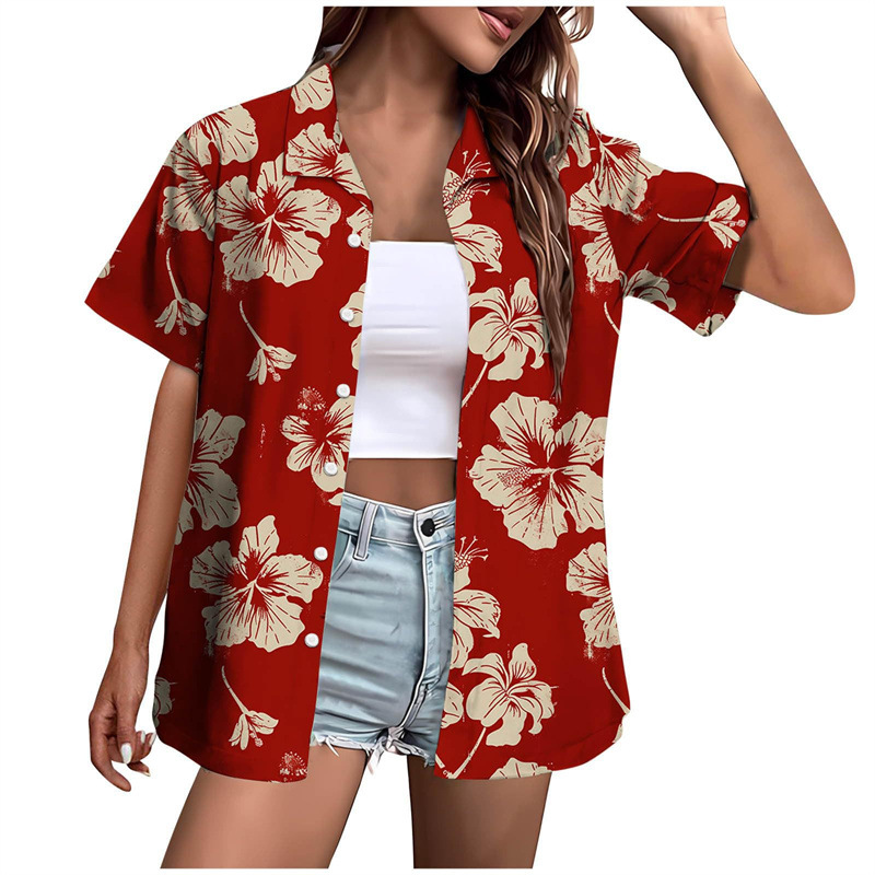 Женская свободная гавайская рубашка с коротким рукавом и 3D-печатью Amazon 2025 года, для отдыха