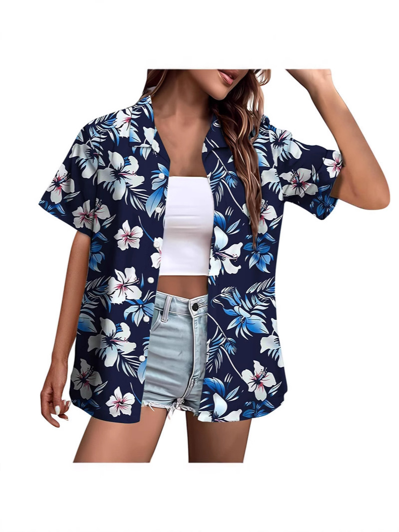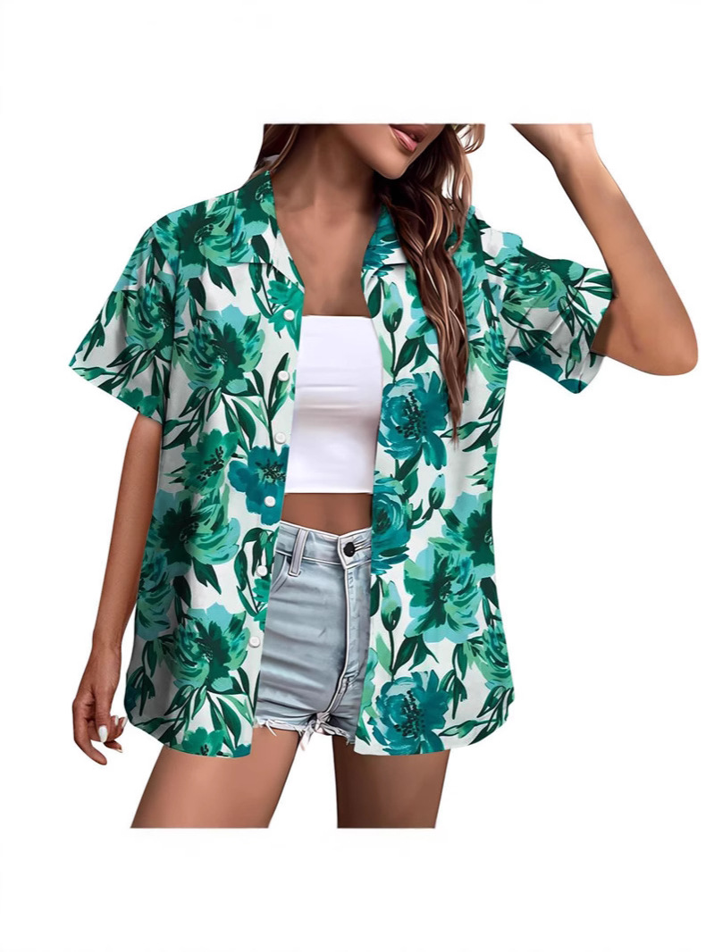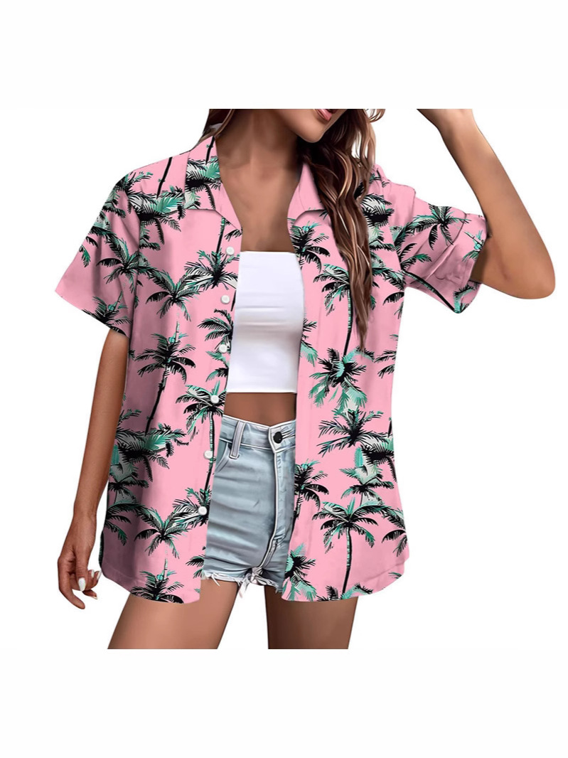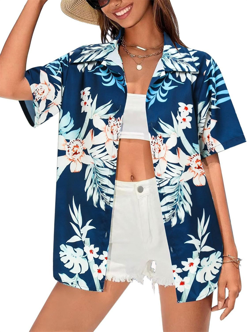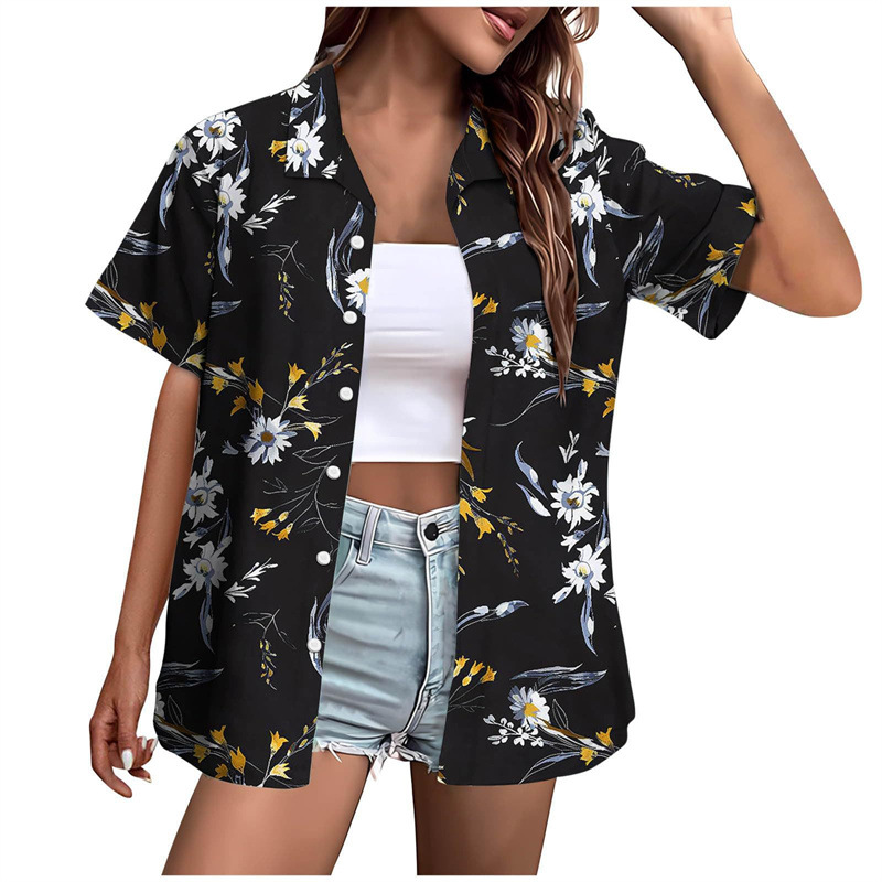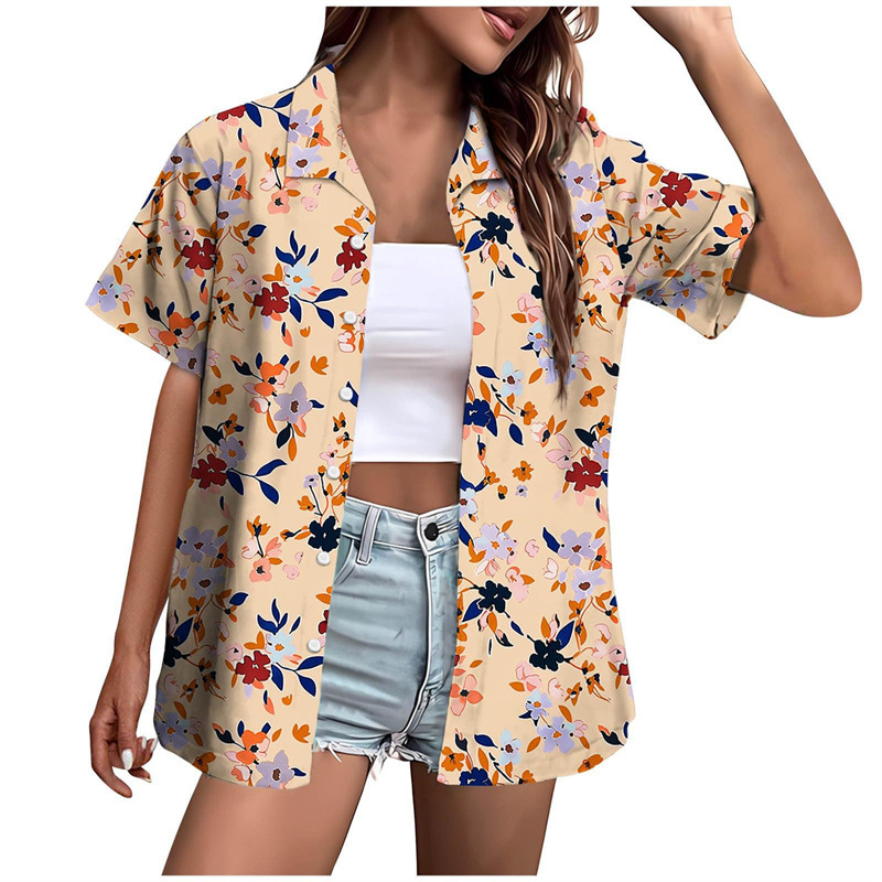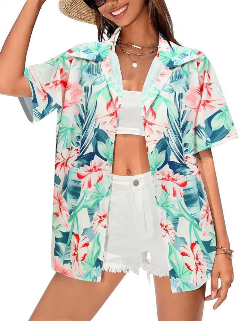 Женская свободная гавайская рубашка с коротким рукавом и 3D-печатью Amazon 2025 года, для отдыха