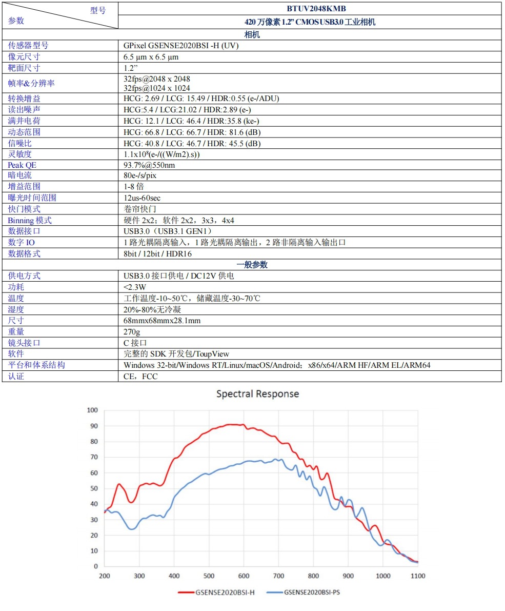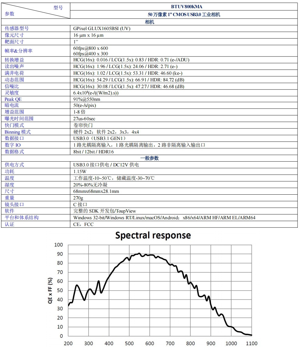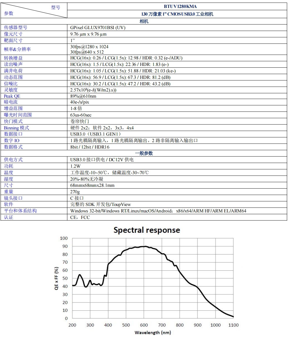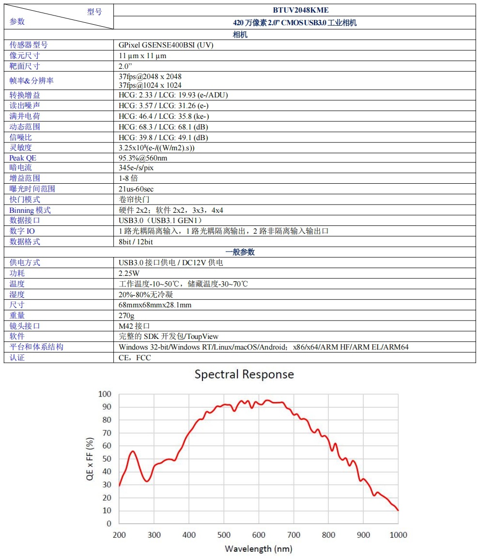 Промышленная камера машинного зрения, УФ-камера, детектор флуоресценции, для биомедицинских исследований, BTUV1280KMA
