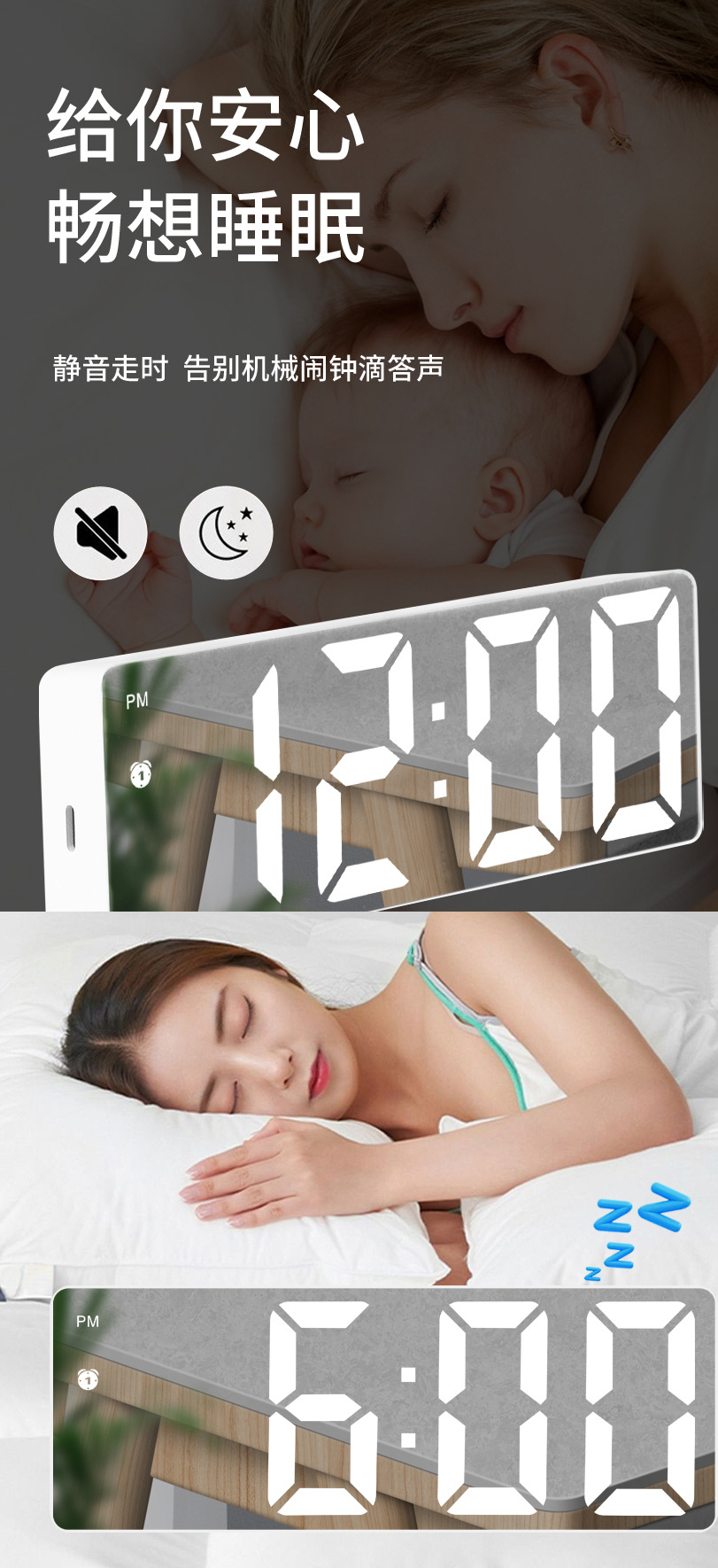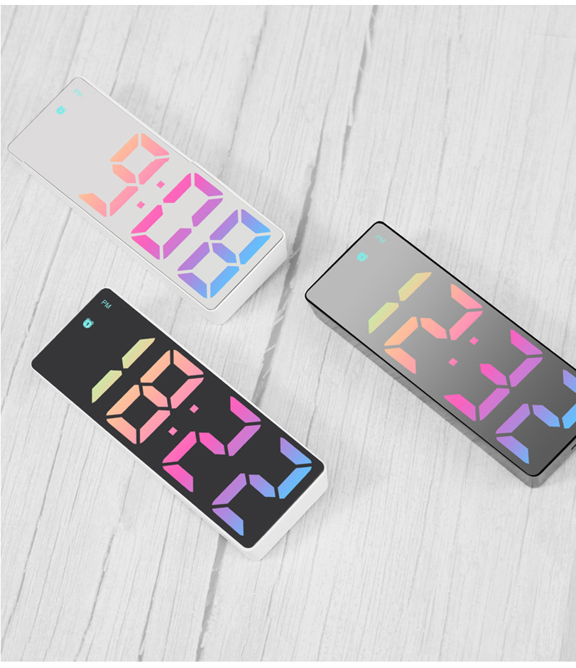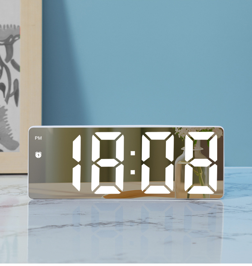 Рекомендуемый трансграничный светодиодный зеркальный цифровой будильник с USB-батареей, универсальные умные часы с голосовым управлением, студенческий будильник