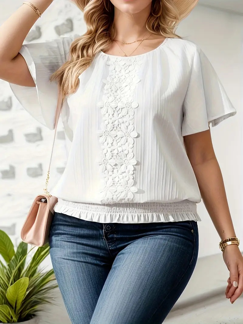 Европейская и американская женская одежда для трансграничной торговли, элегантные и модные рубашки больших размеров с круглым вырезом, короткими рукавами и рюшами, летняя европейская и американская внешнеторговая коллекция.