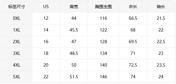0XL; 1XL; 2XL; 3XL; 4XL; 5XL; L